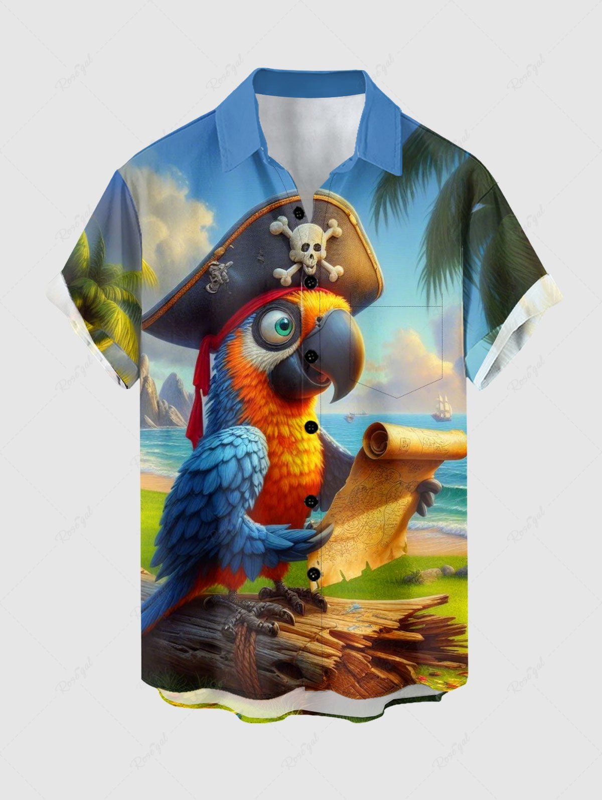 Chemise à poches boutonnées grande taille pour homme, imprimé perroquet pirate, croisière hawaïenne - 6xl