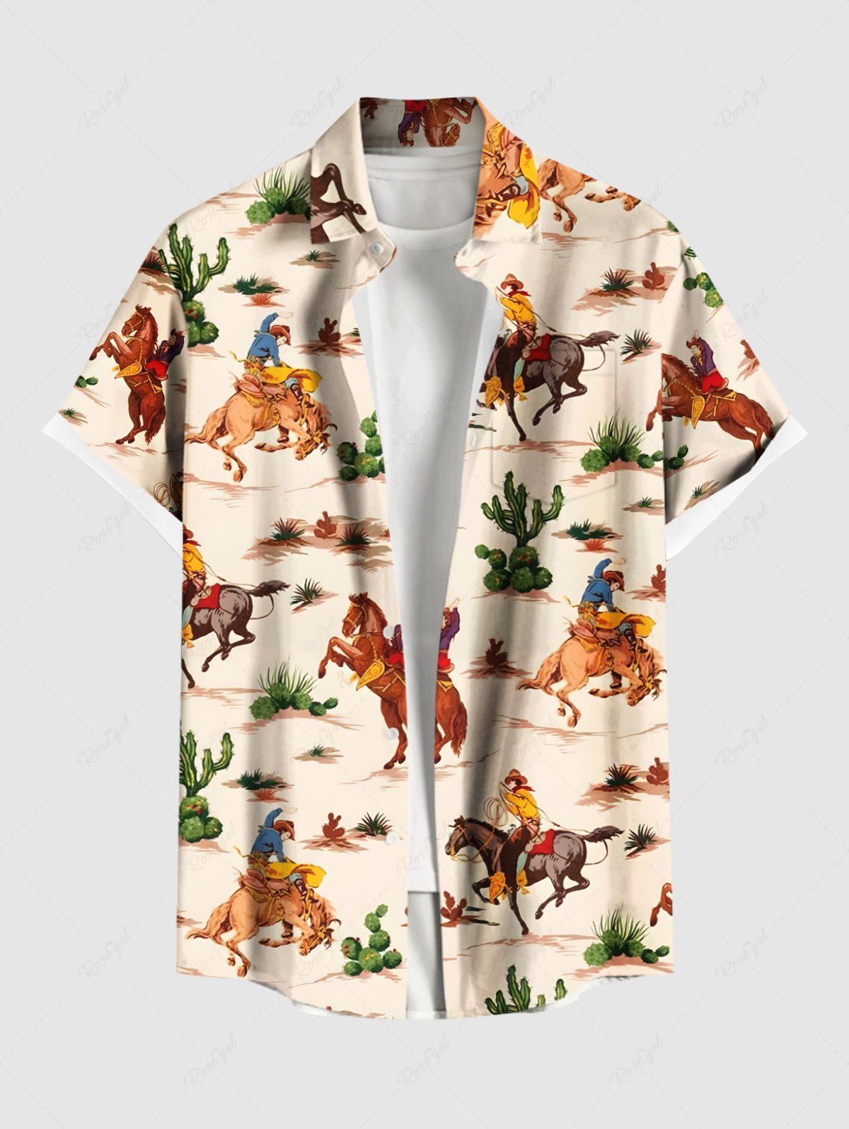Chemise Boutonnée Imprimé Cactus et Coeur Grande Taille avec Poche - 3xl