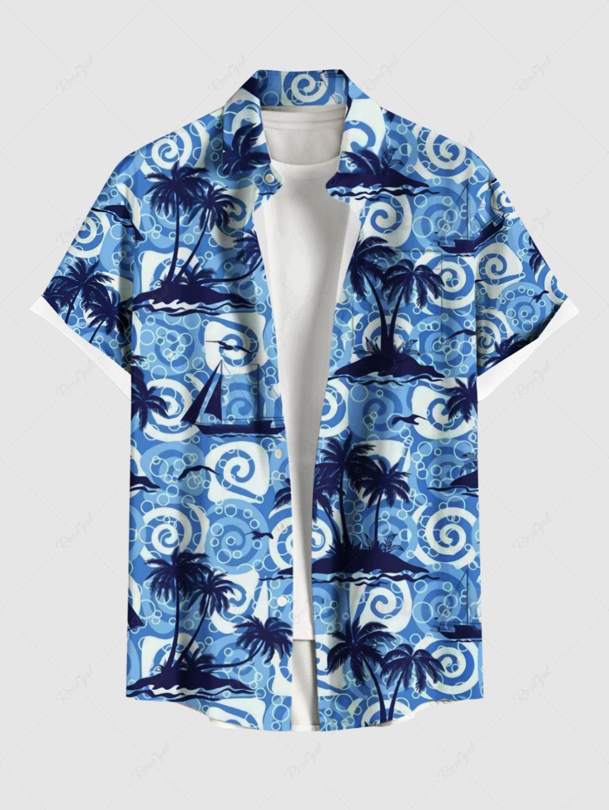 Chemise Boutonnée Imprimé Cocotier Hawaiien avec Poche Grande Taille pour Homme - 4xl