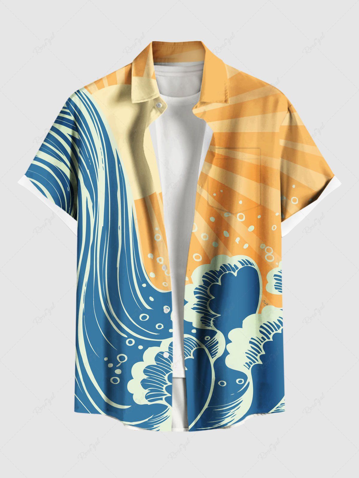 Chemise Décontractée Lever du Soleil Vague de Mer de Grande Taille avec Poche - M