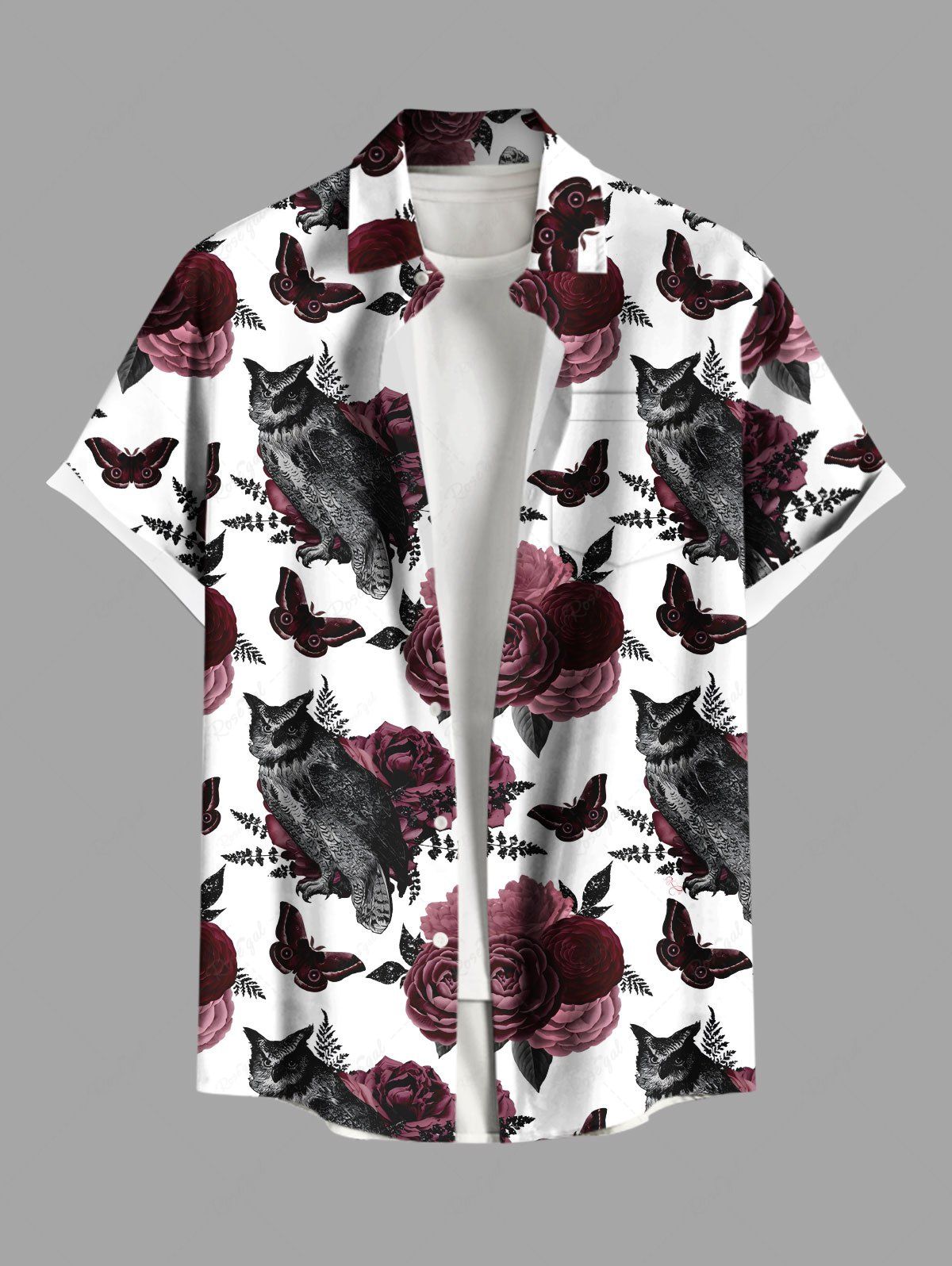 Chemise grande taille à imprimé rose, fleur, feuille, papillon, hibou, Halloween, boutonnée, poche, pour homme - Xl