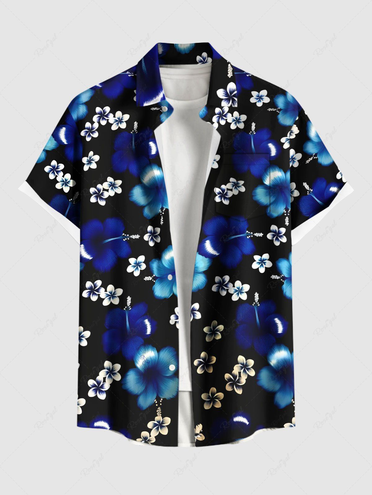 Chemise hawaïenne grande taille à imprimé fleurs d'hibiscus ombré et poches boutonnées pour homme - 6xl