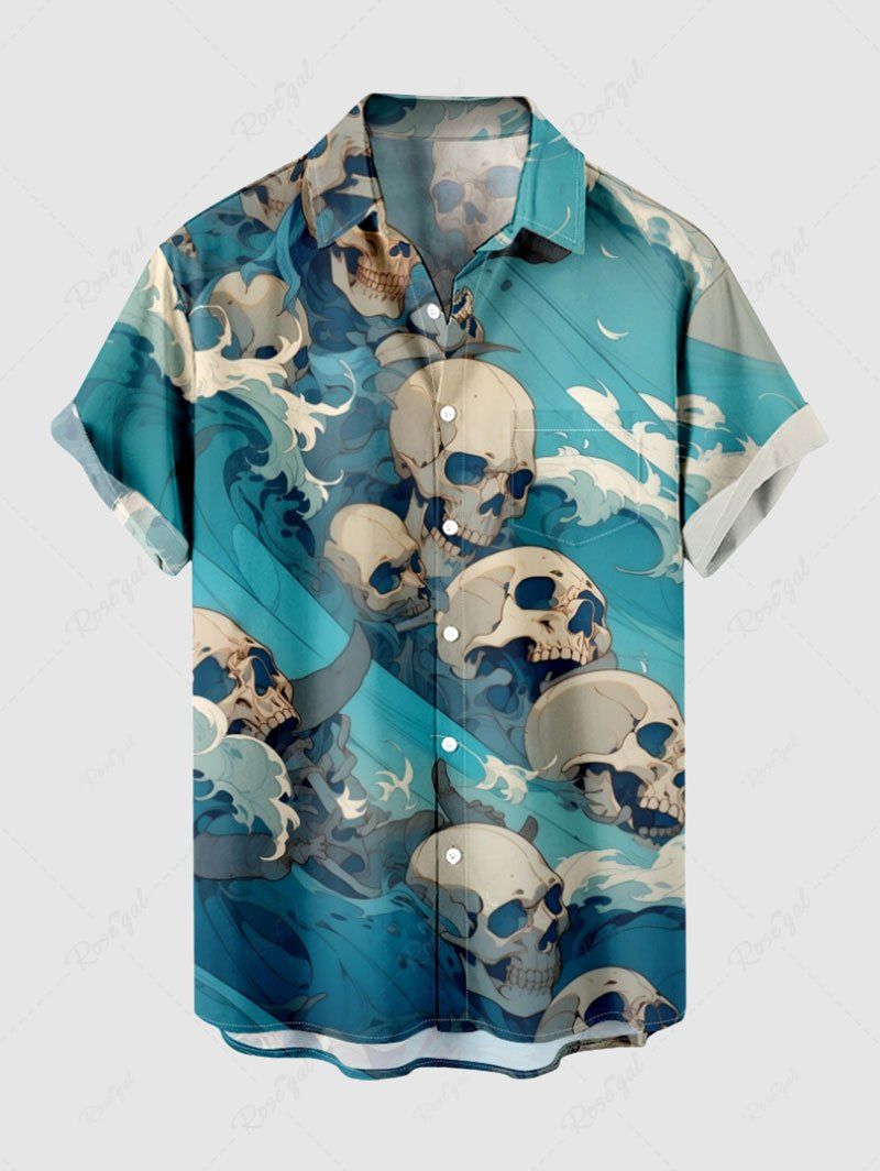 Chemise hawaïenne grande taille à boutons et poches, imprimé tête de mort et vagues de la mer, pour homme - 6xl