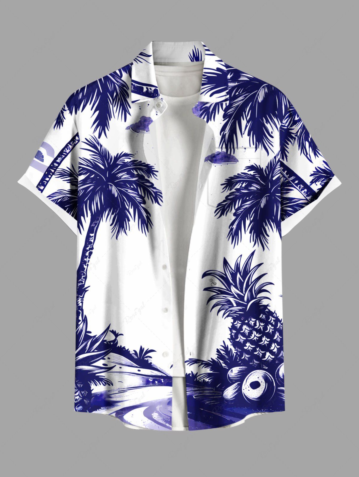 Chemise hawaïenne grande taille à imprimé cocotier, ananas et nuages, avec poches et boutons, pour homme - Xl