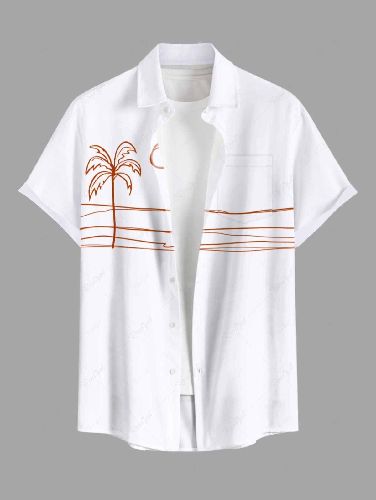 Chemise hawaïenne grande taille à imprimé cocotier, soleil, vagues, bonhomme allumette, boutons et poches pour homme - 3xl