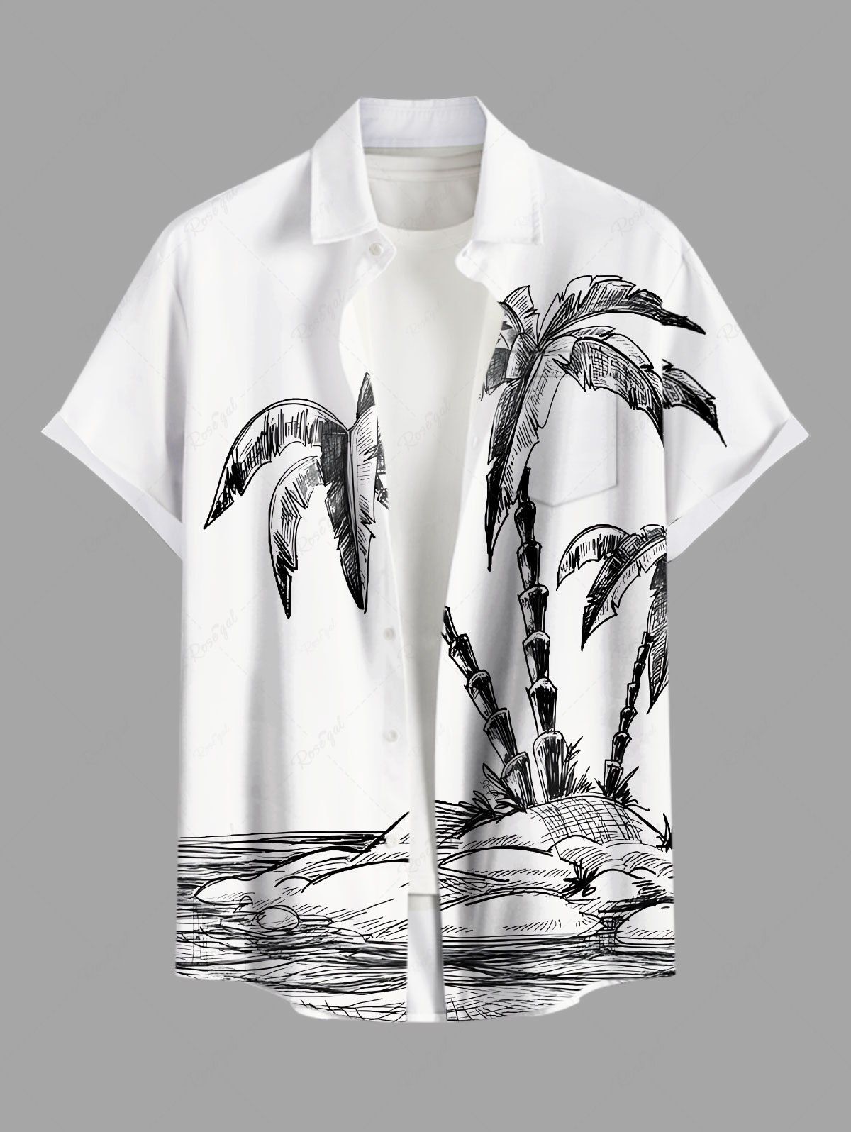 Chemise hawaïenne grande taille à imprimé cocotiers et paysage marin, avec poches et boutons, pour homme - M