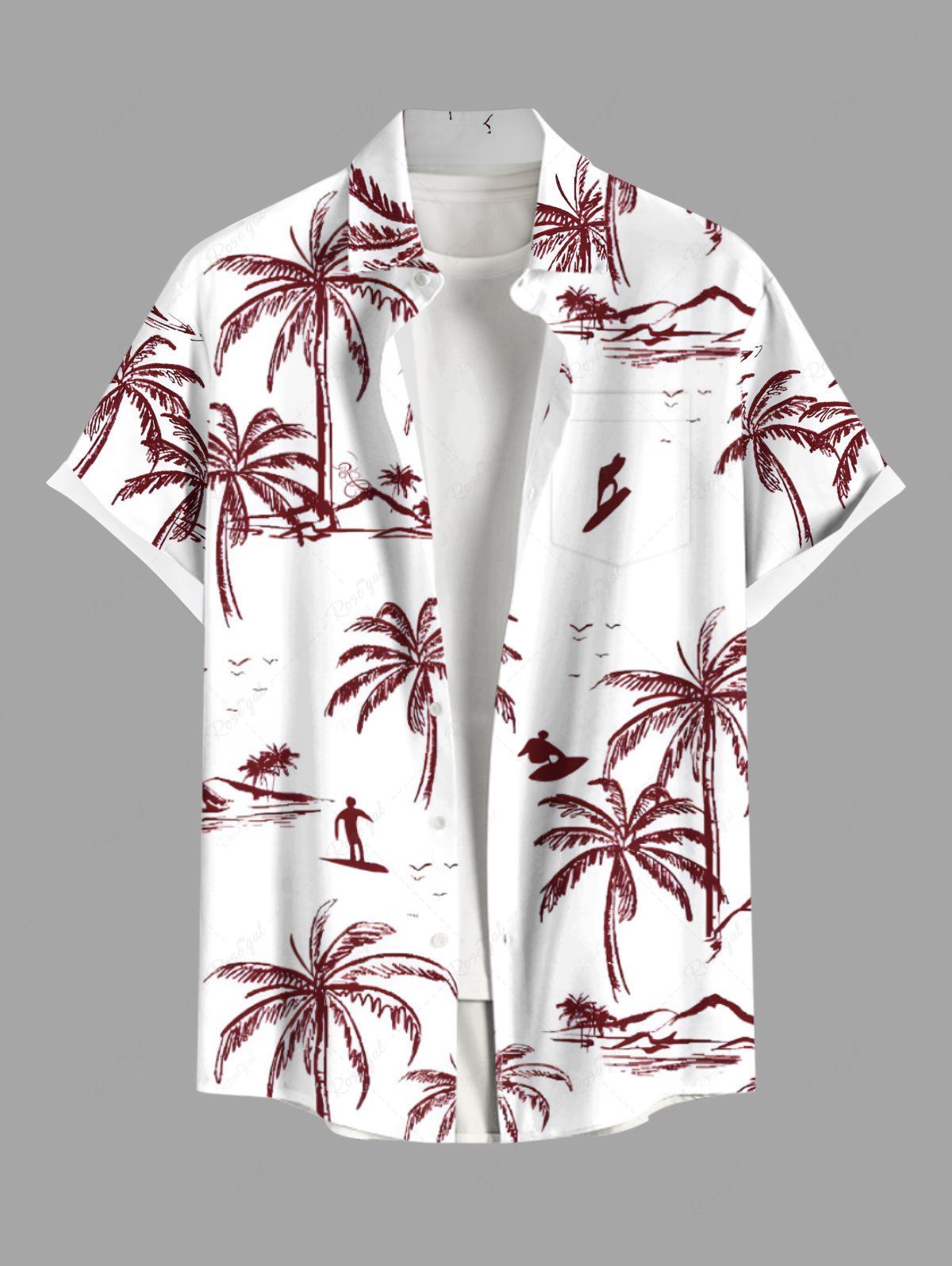 Chemise hawaïenne grande taille à imprimé cocotiers et surfeurs pour homme - 3xl