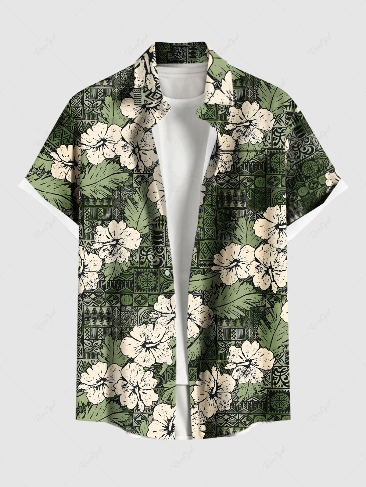 Chemise hawaïenne grande taille à imprimé fleurs d'hibiscus et feuilles, boutons et poches, pour homme - Xl