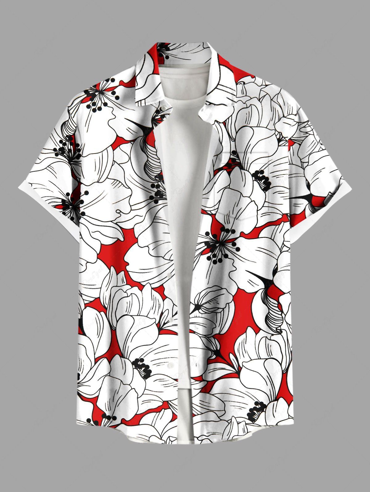 Chemise hawaïenne grande taille à imprimé fleurs d'hibiscus et poches boutonnées pour homme - 3xl