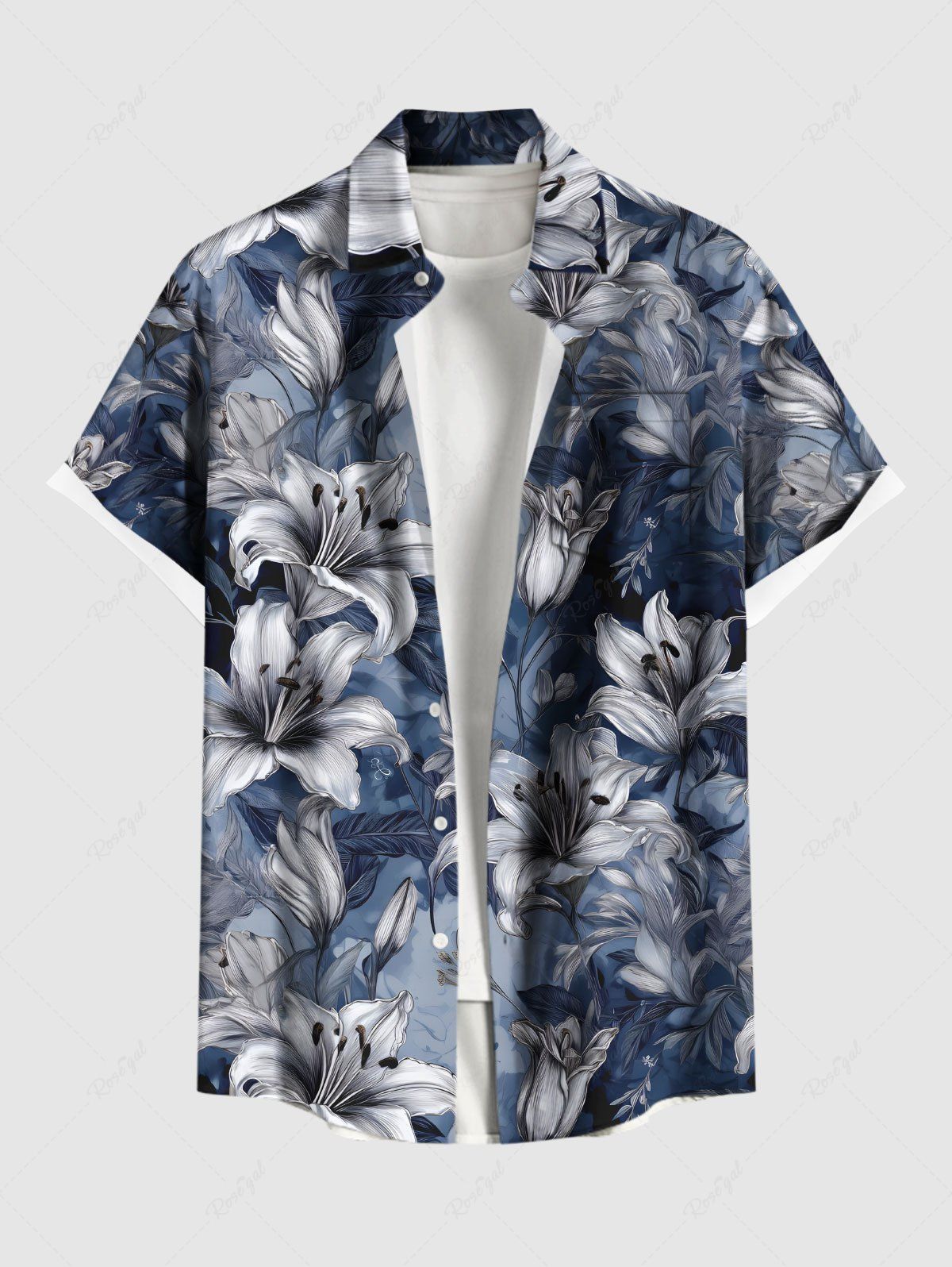 Chemise hawaïenne grande taille à imprimé floral et feuilles ombré, boutons et poches pour homme - 5xl
