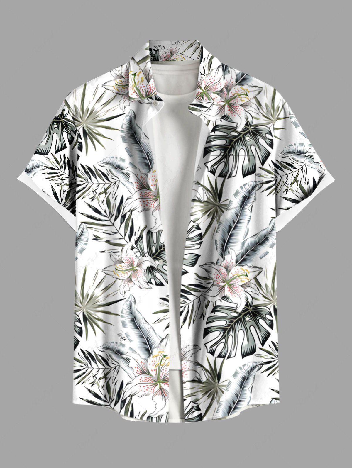 Chemise hawaïenne grande taille à imprimé floral et feuilles tropicales pour homme - Xl