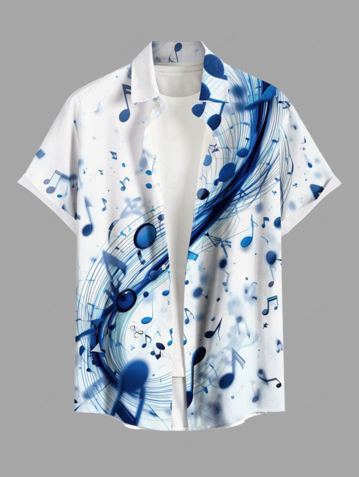 Chemise hawaïenne grande taille à imprimé symbole musical ombré et poches boutonnées pour homme - M