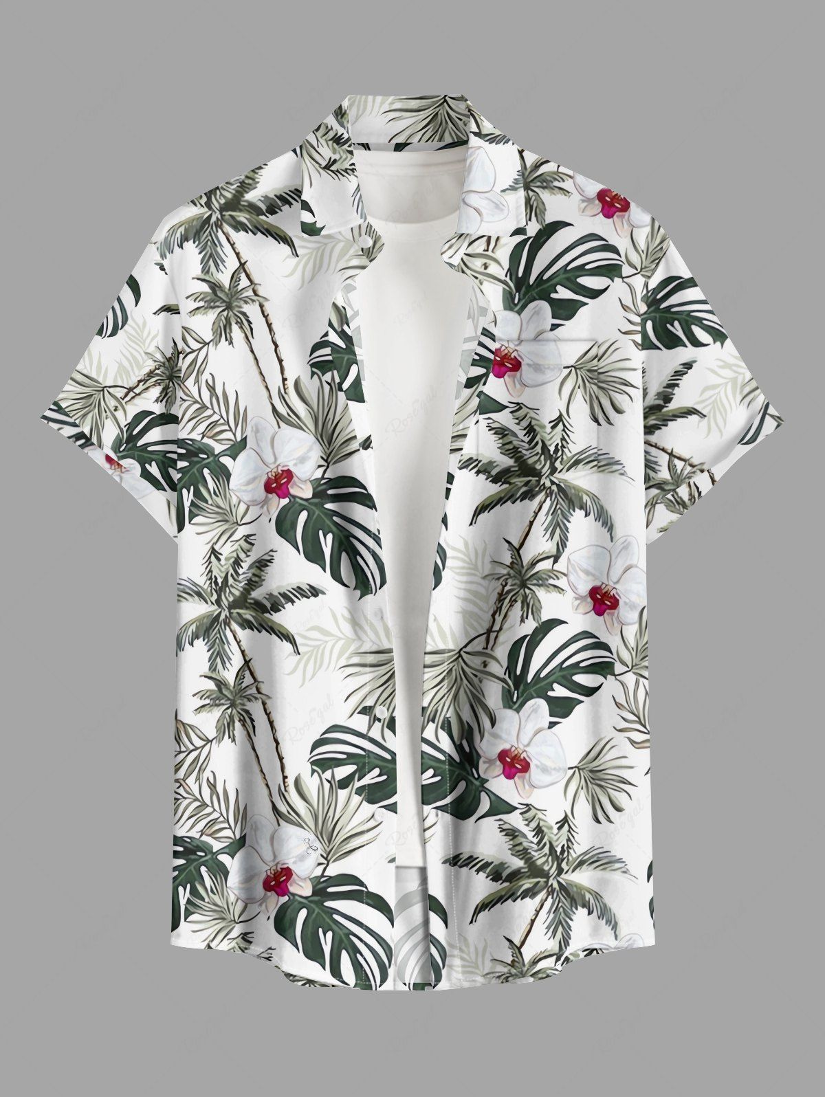 Chemise hawaïenne grande taille pour homme, à imprimé floral tropical, feuilles et cocotiers, boutons et poche. - 2xl