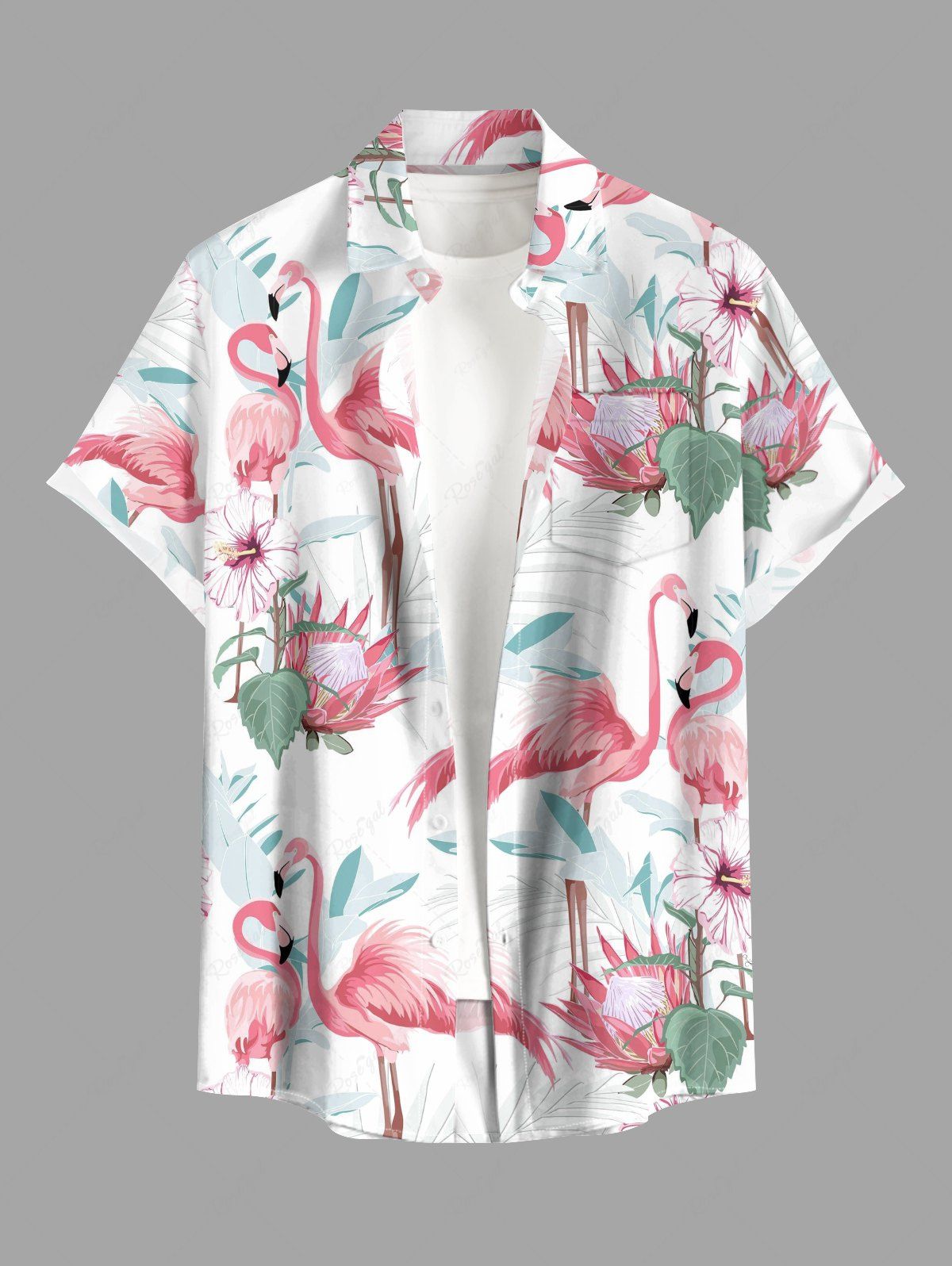 Chemise hawaïenne grande taille pour homme, à imprimé tropical flamants roses et feuilles, boutons et poche. - Xl