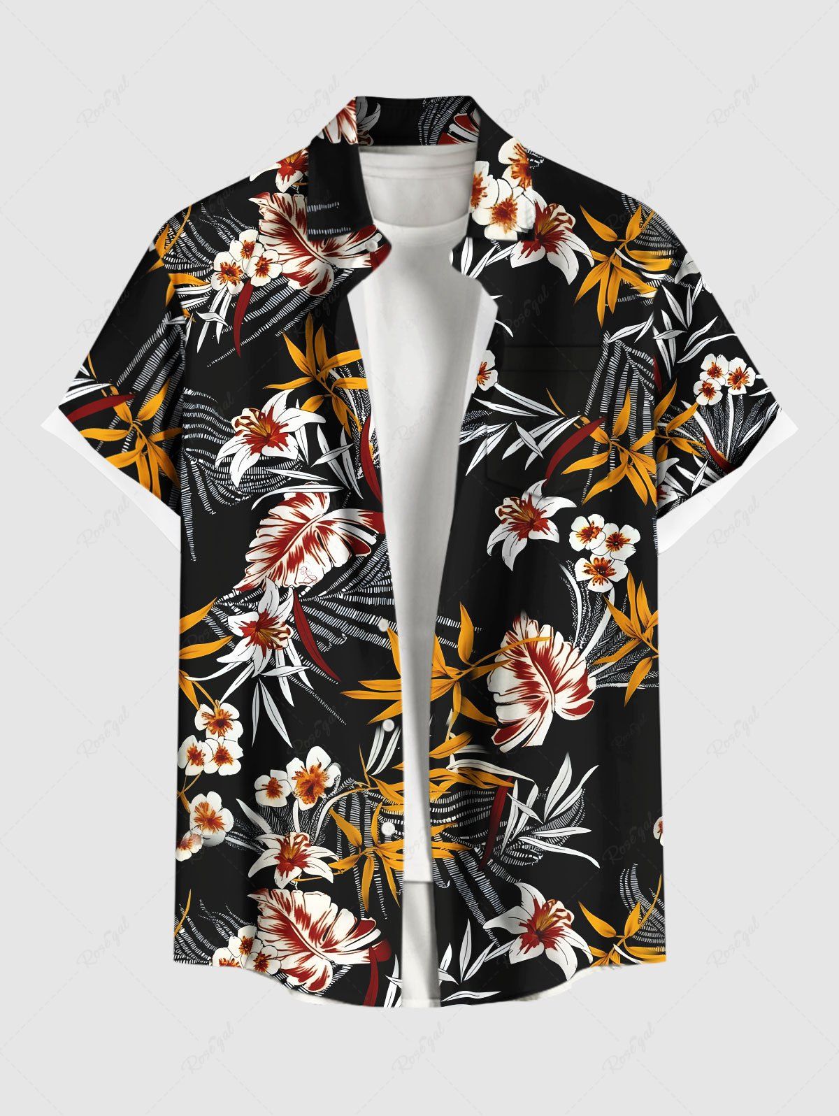 Chemise hawaïenne grande taille à imprimé feuilles tropicales et fleurs pour homme - 3xl