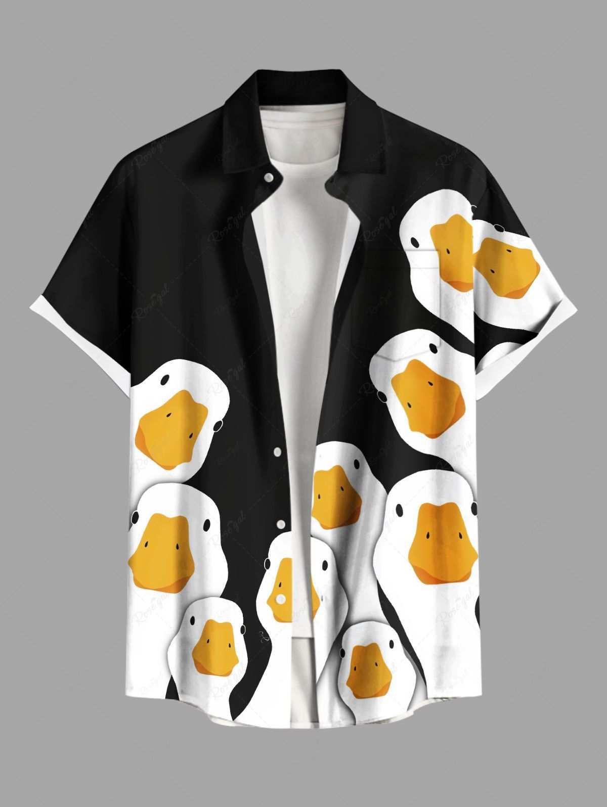 Chemise Imprimé Oie à Boutons Grande Taille avec Poche pour Homme - L