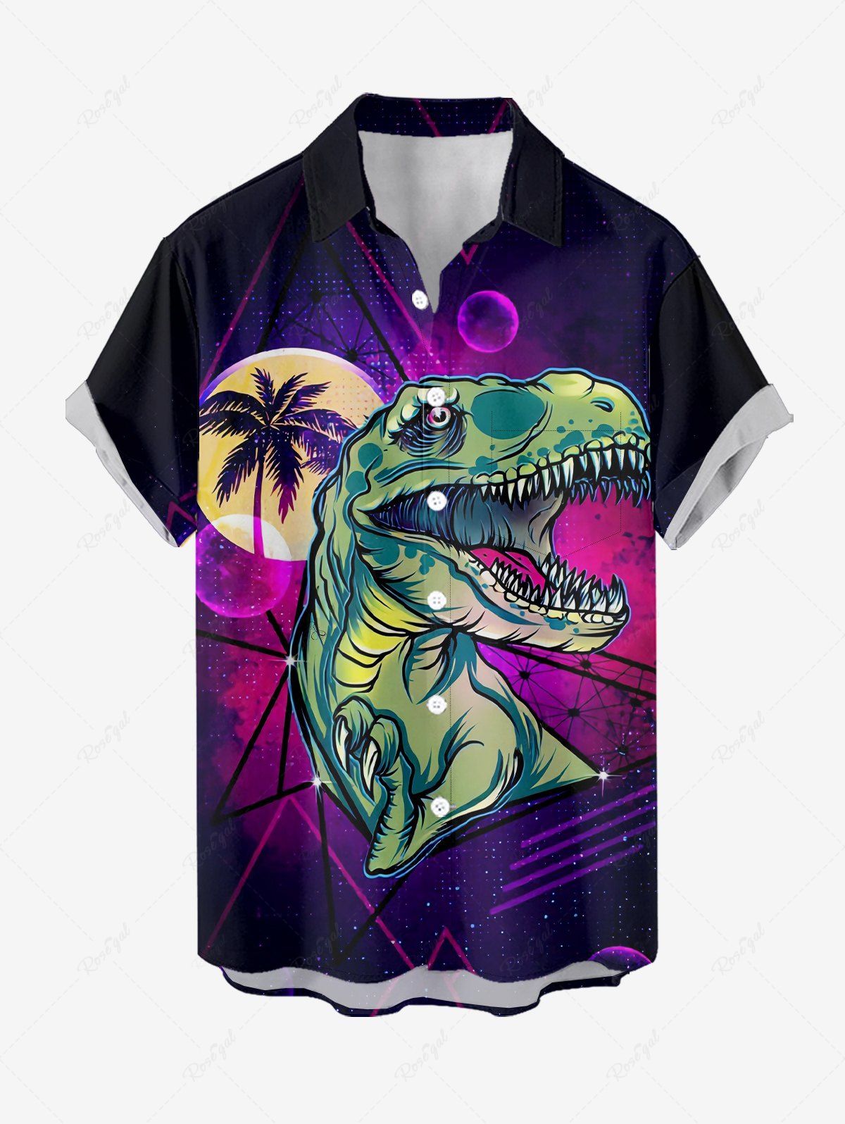 Plus Size Coconut Tree Moon Dinosaur Galaxy Print Hawaii Button Pocket Shirt For Men - 5xl