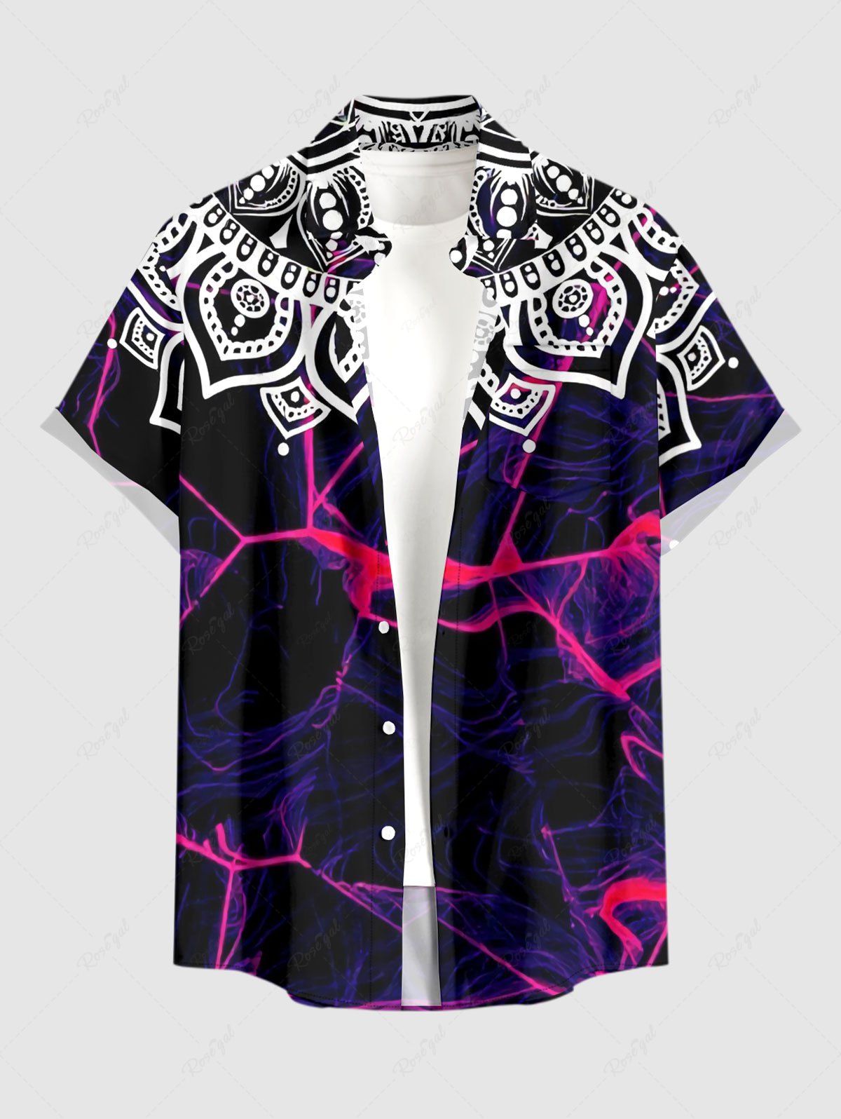 Plus Size Ethnic Graphic Tie Dye Print Hawaii Button Pocket Shirt For Men - 4xl