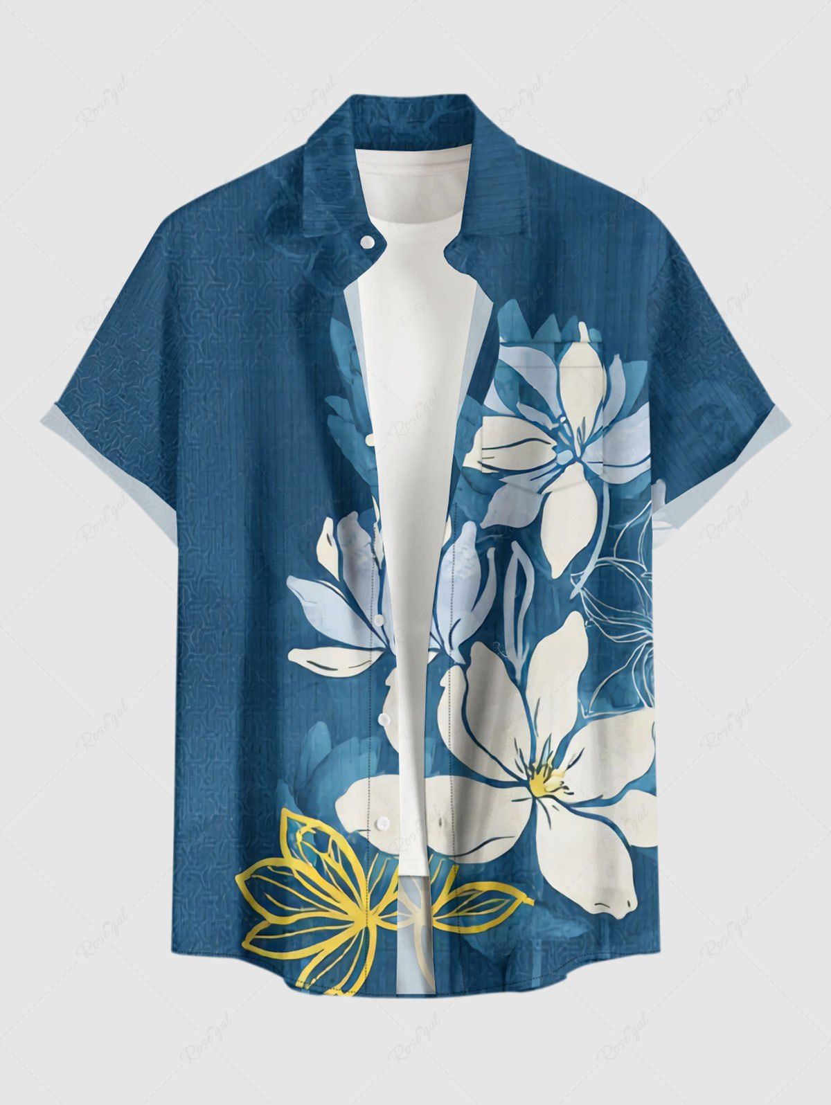 Plus Size Flower Print Hawaii Button Pocket Shirt For Men - 3xl