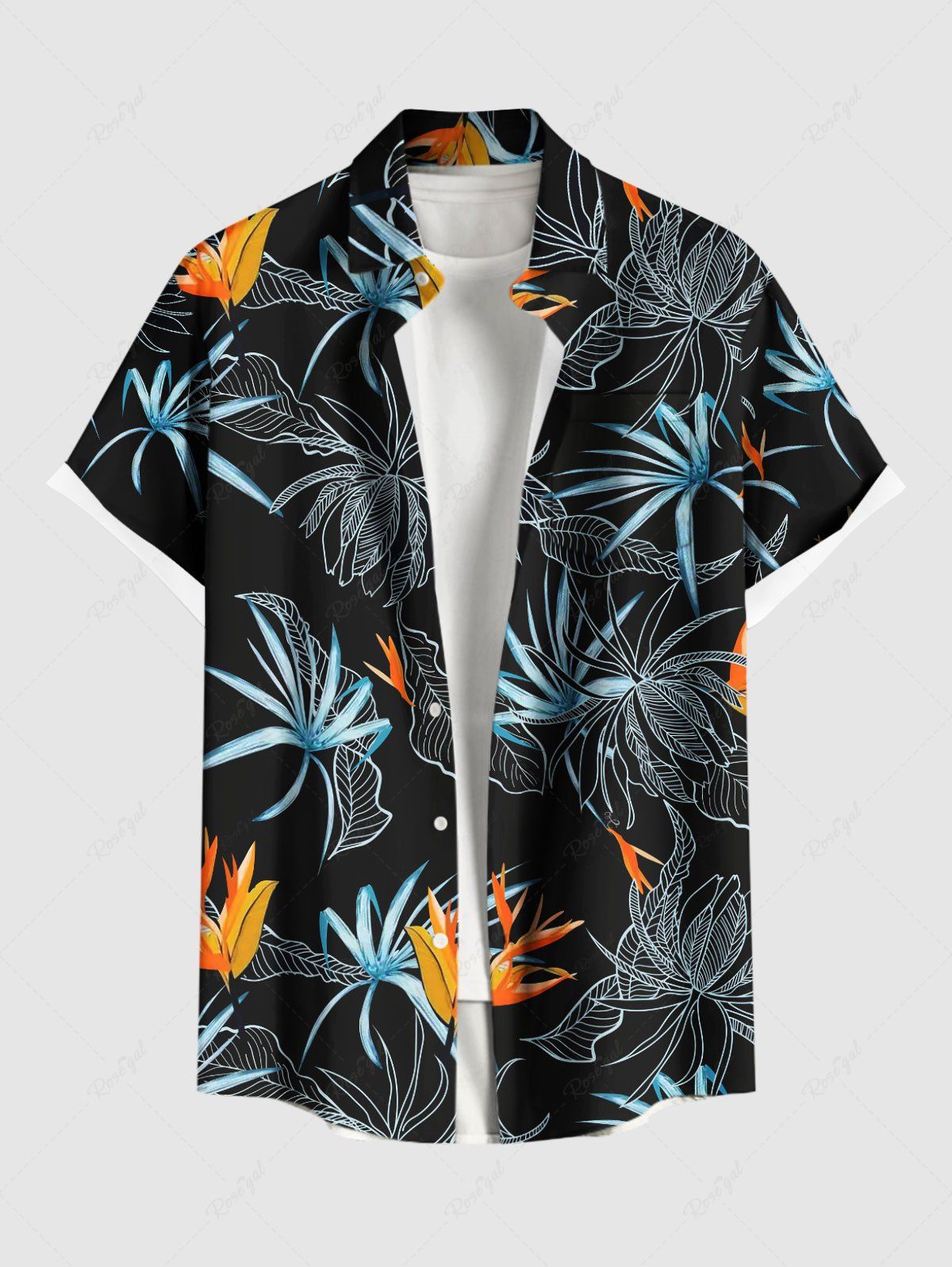 Plus Size Flowers Print Buttons Pocket Hawaii Shirt For Men - M