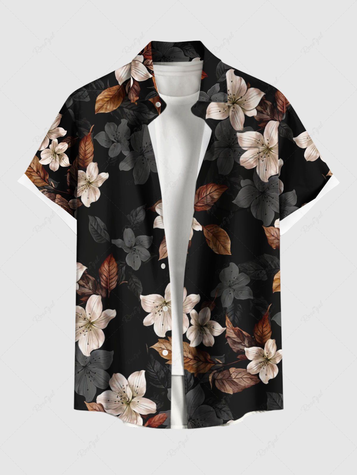 Plus Size Leaf Flower Print Hawaii Button Pocket Shirt For Men - L