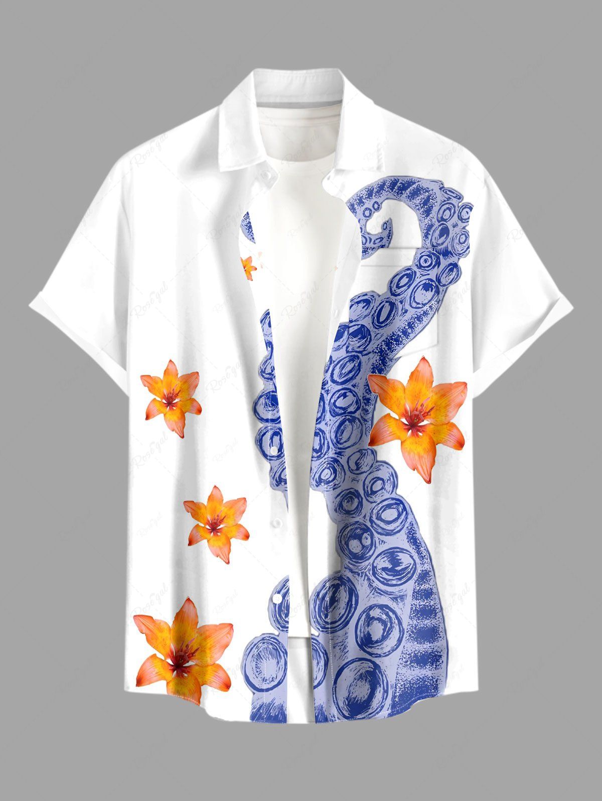 Plus Size Octopus Flowers Print Buttons Pocket Hawaii Shirt For Men - M