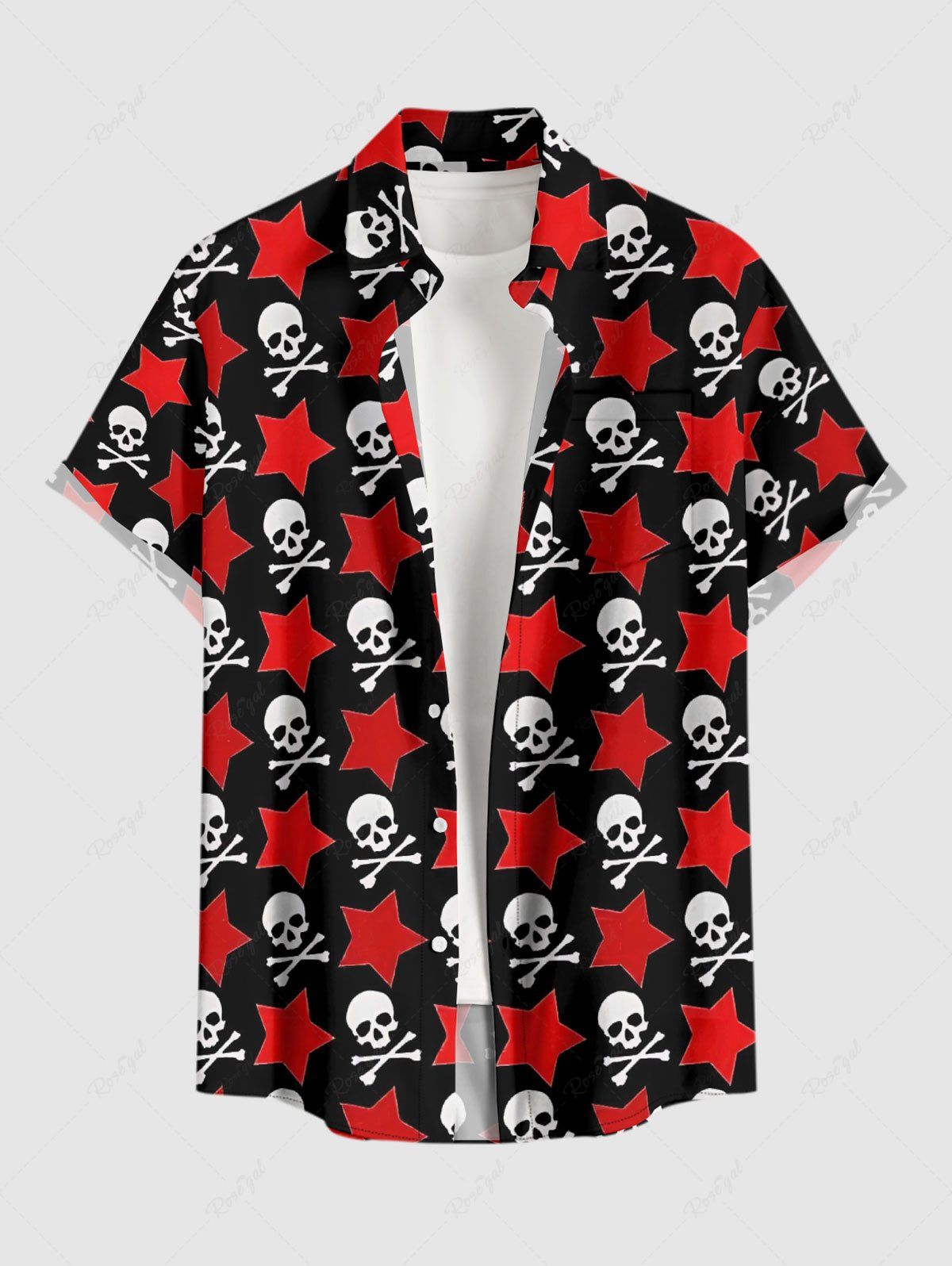 Plus Size Skulls Star Print Button Pocket Shirt For Men - 6xl