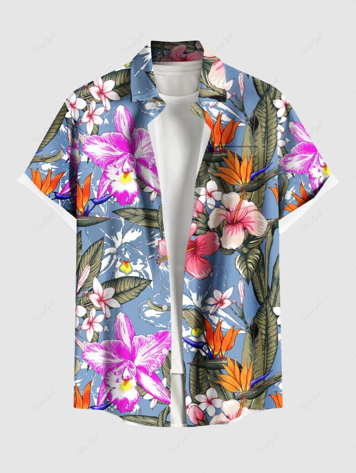 Plus Size Tropical Leaf Hibiscus Flower Print Hawaii Button Pocket Shirt For Men - 4xl