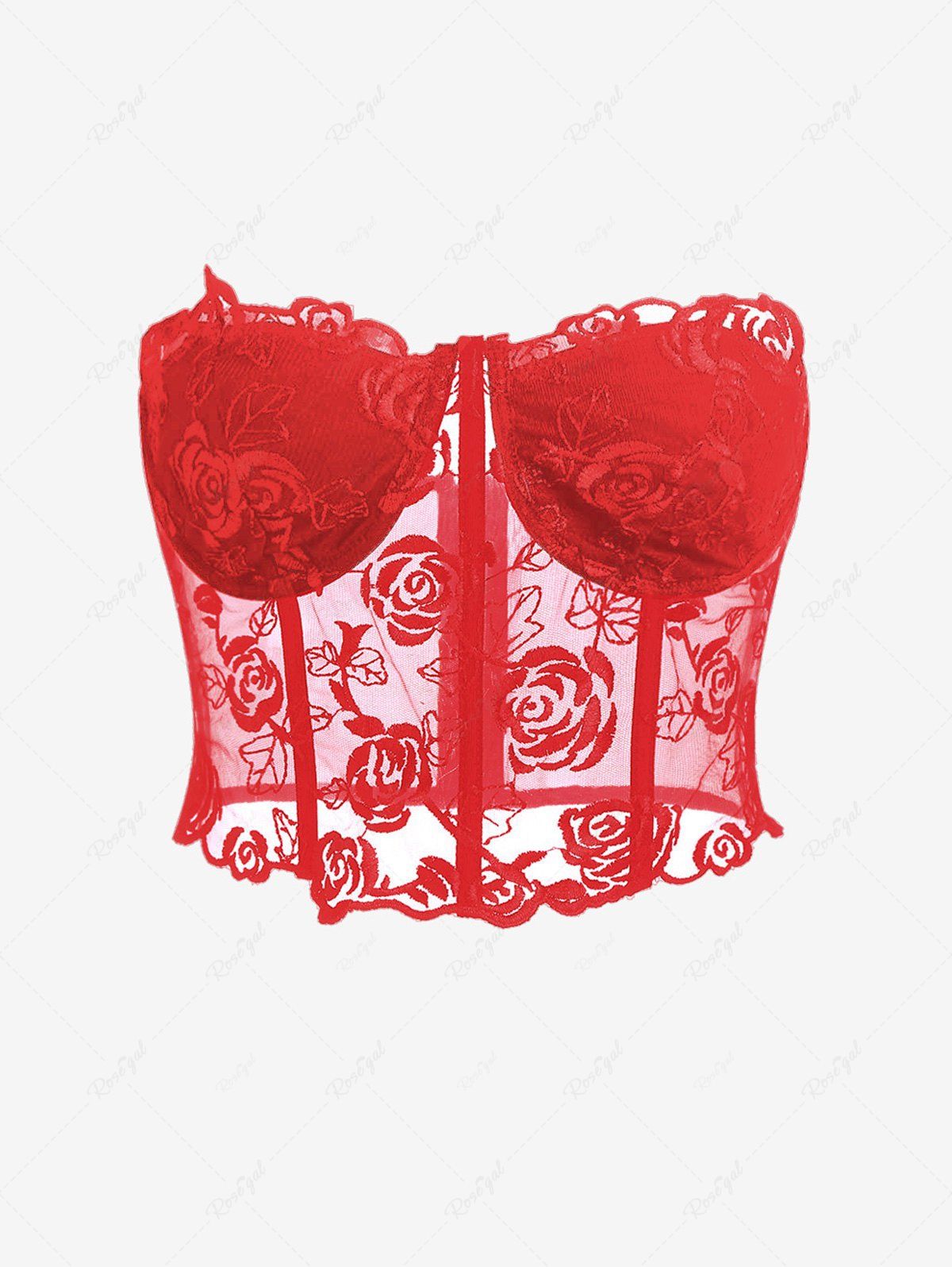 De la dentelle complexe et un bustier élégant et séduisant de style corset composent ce haut court sans bretelles, qui comporte des bonnets à armatures pour un soutien suffisant.