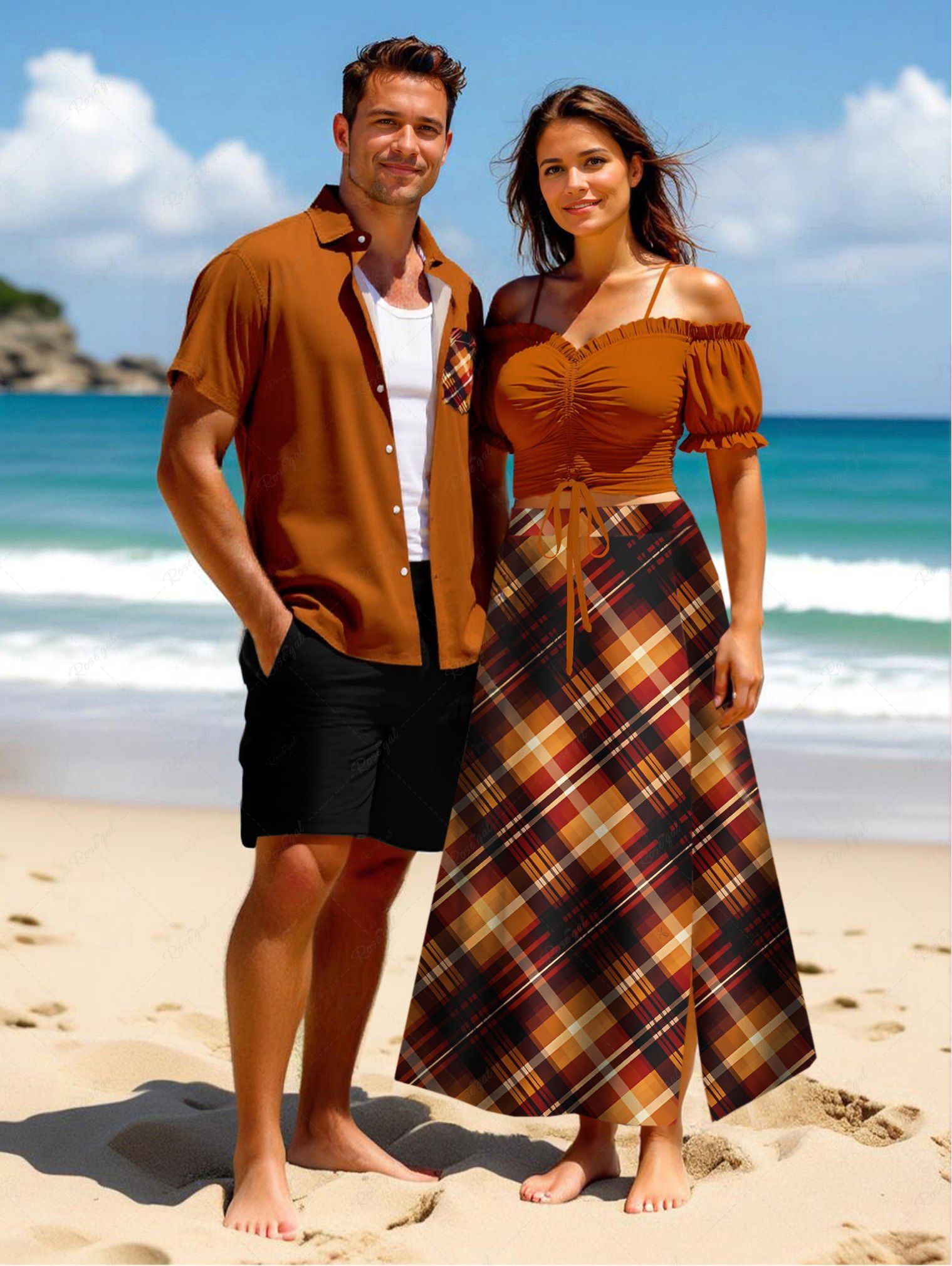 Tenue d'Halloween grande taille à imprimé écossais pour couples