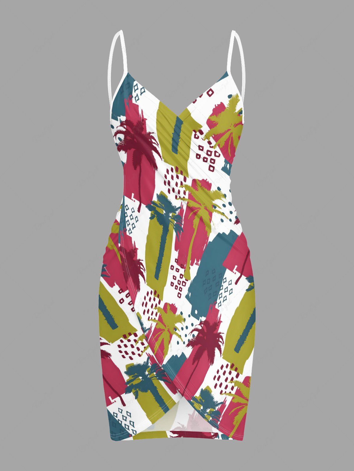 Paréo de plage convertible grande taille à motif colorblock représentant un cocotier, style hawaïen - 1x