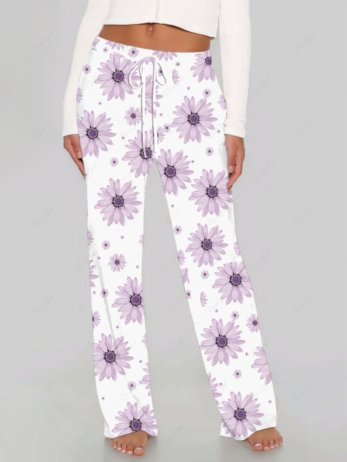Pantalon hawaïen à jambes larges, imprimé marguerites, grande taille et cordon de serrage - 2x