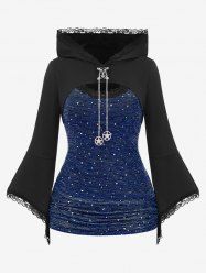• Plus Size Lace Trim Chains Textured Ruched Bell Sleeves Hooded T-shirt Taille: 2X | US 18-20 Couleur: PURPLE