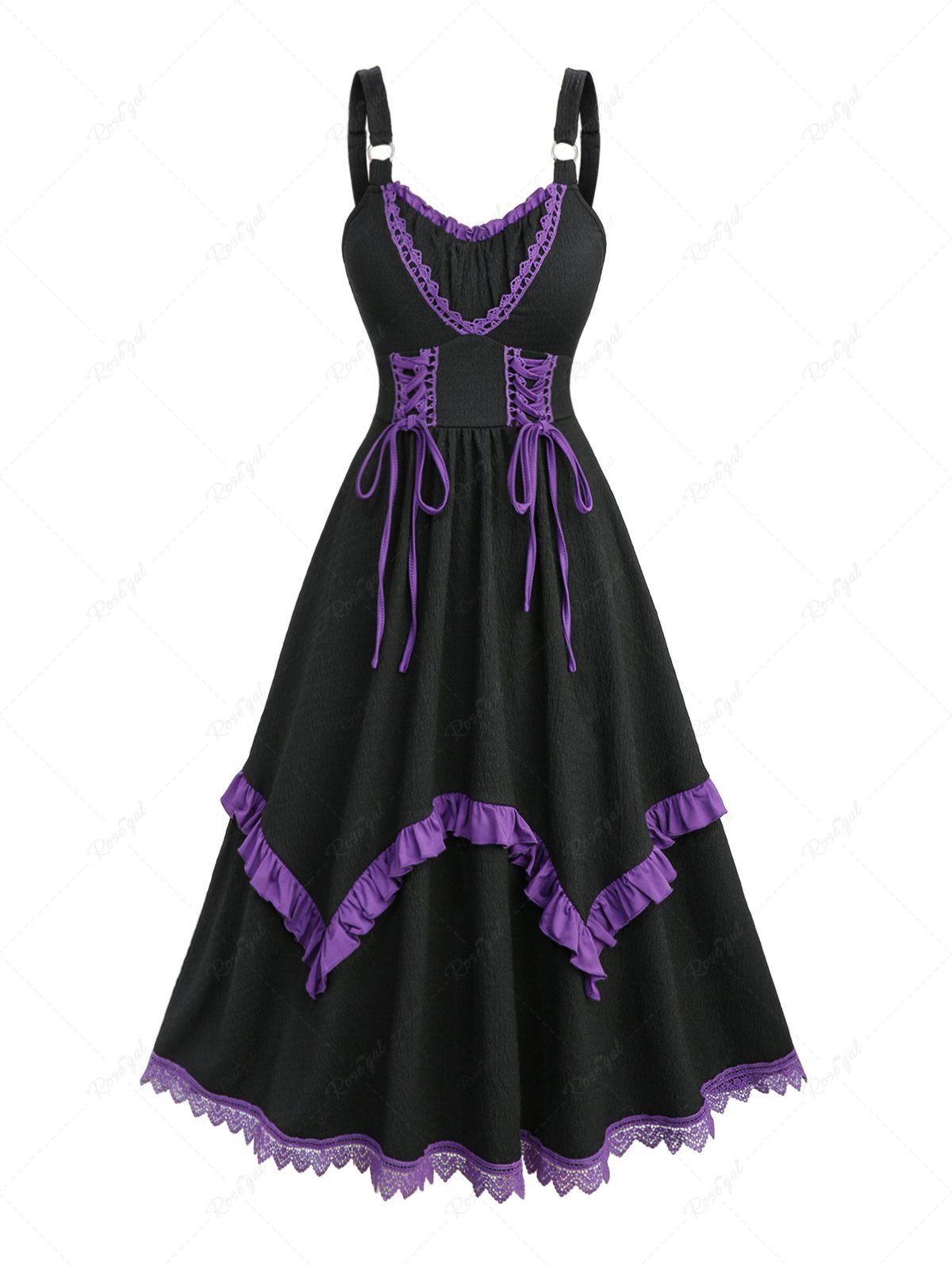 Lace Up Contrast Piping Ruffles Textured Layered A Line Tank Dress - Xxxl
