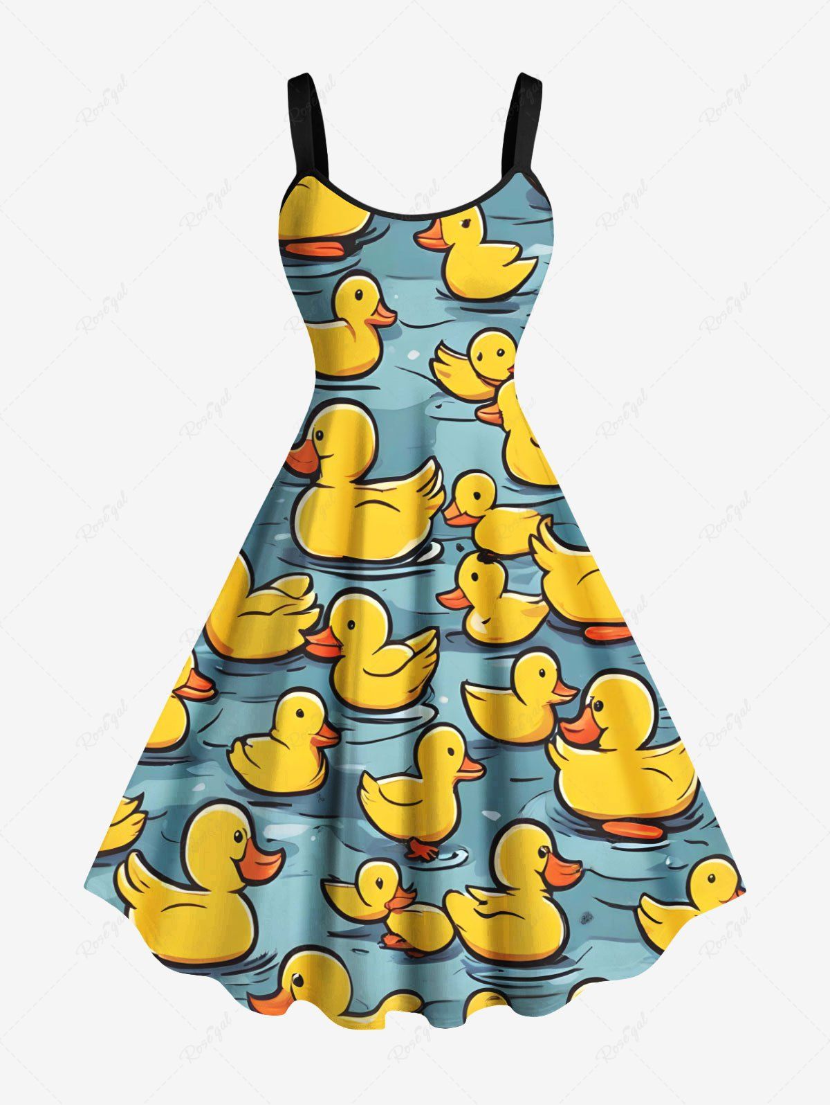 Plus Size Cute Duck Pond Print Hawaii A Line Dress - 5x