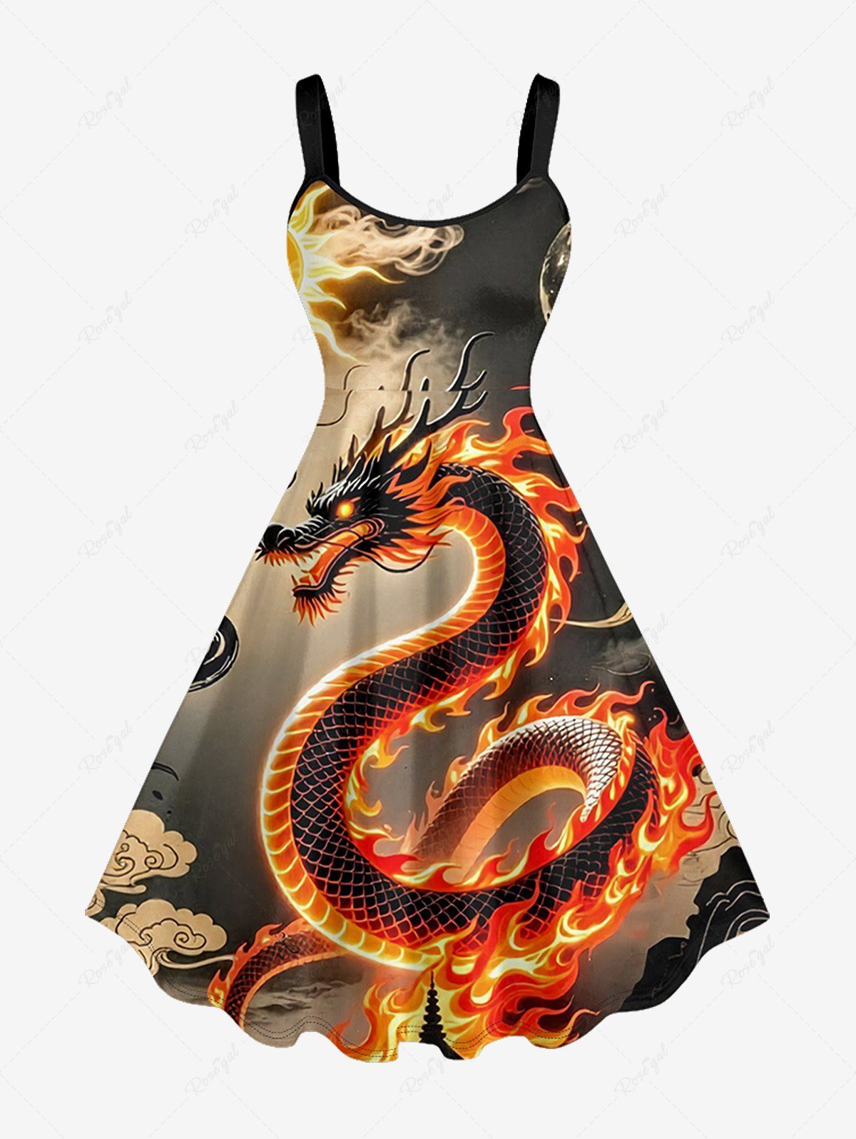 Plus Size Dragon Fire Flame Print A Line Dress - 2x
