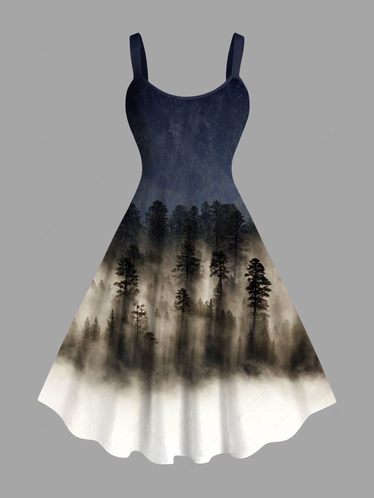 Robe Débardeur Hawaïen Ombrée Arbre et Montagne Imprimés de Grande Taille - 6x