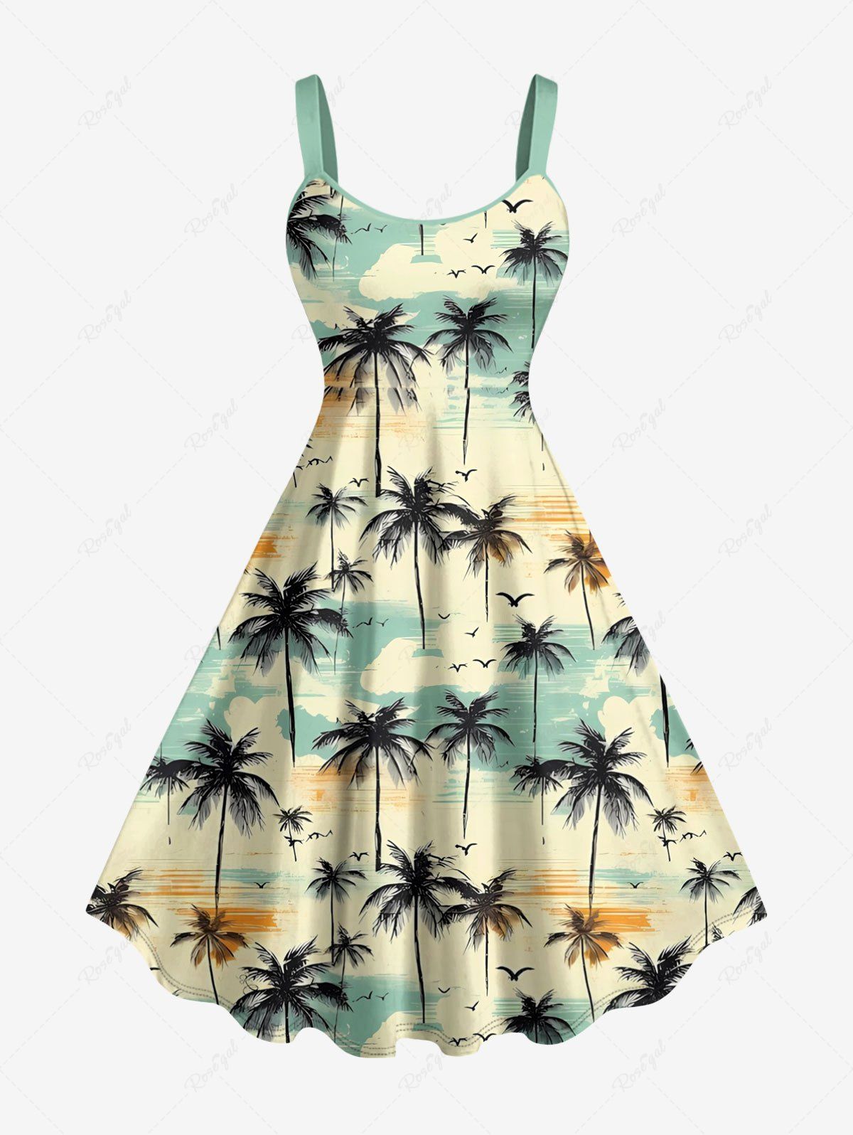 Robe débardeur hawaïenne grande taille à imprimé cocotier, oiseau et nuage - 5x