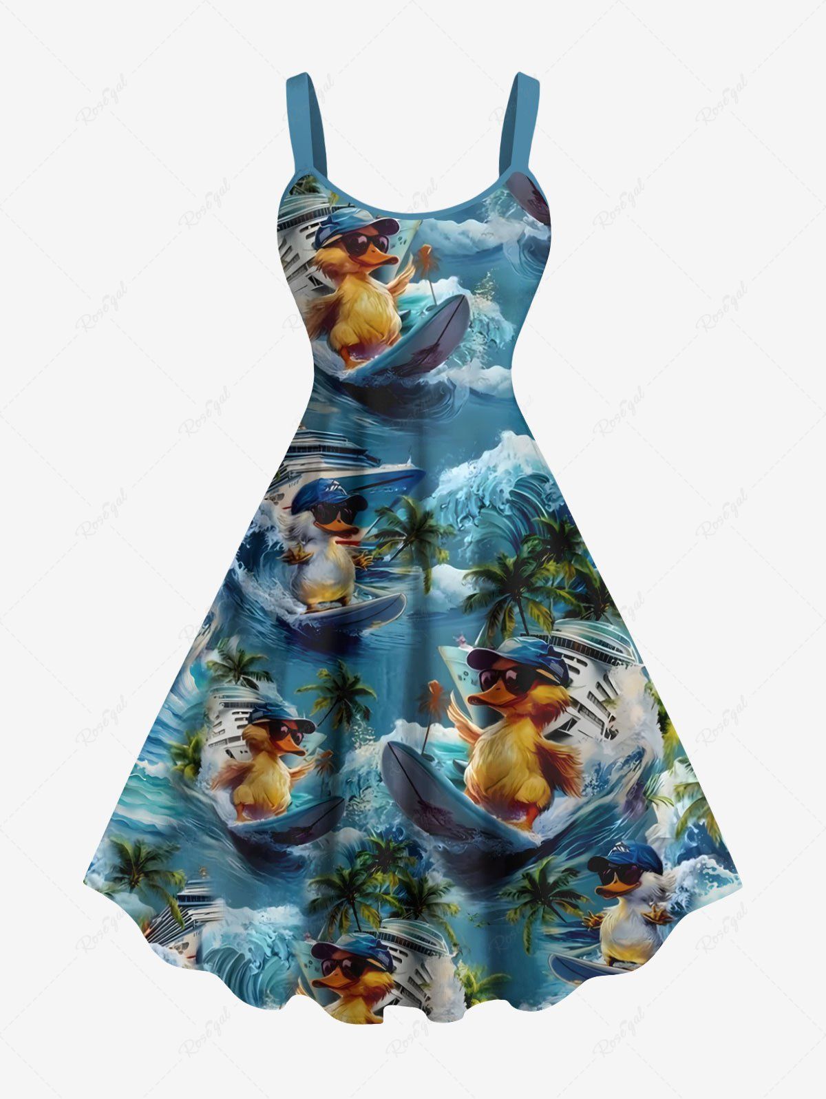 Robe débardeur hawaïenne grande taille à imprimé cocotiers, vagues, surf, canards et navires - 6x