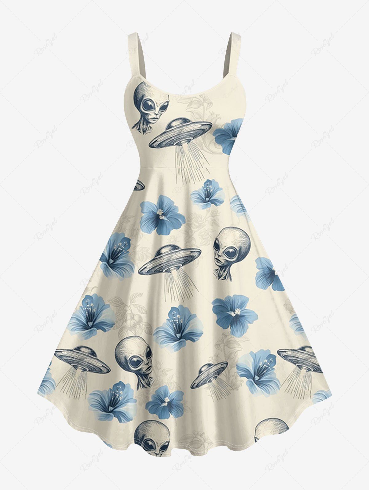 Robe débardeur hawaïenne grande taille à imprimé extraterrestre et fleurs d'hibiscus - 2x