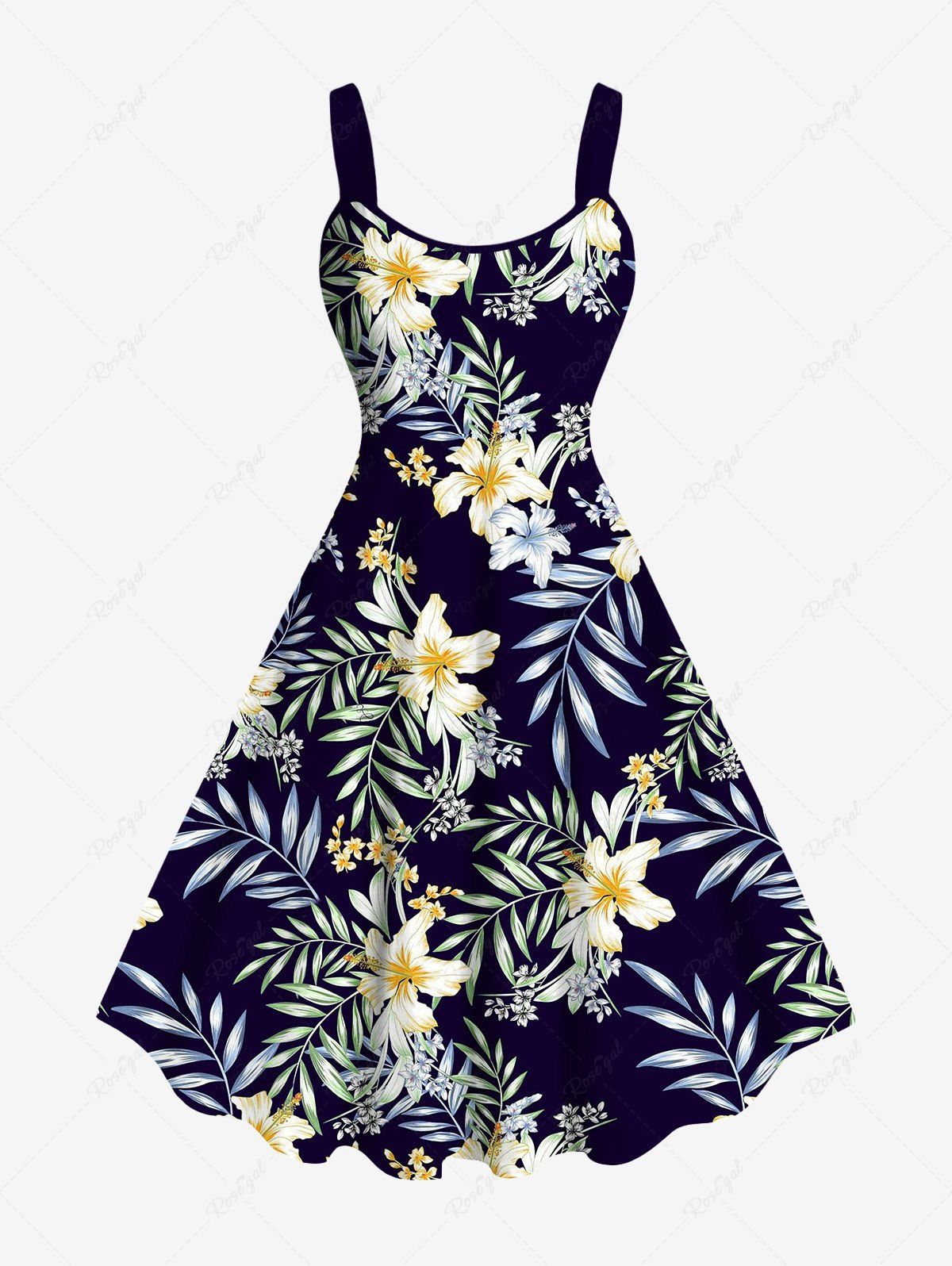 Robe débardeur trapèze hawaïenne grande taille à imprimé feuilles tropicales et fleurs d'hibiscus - 5x