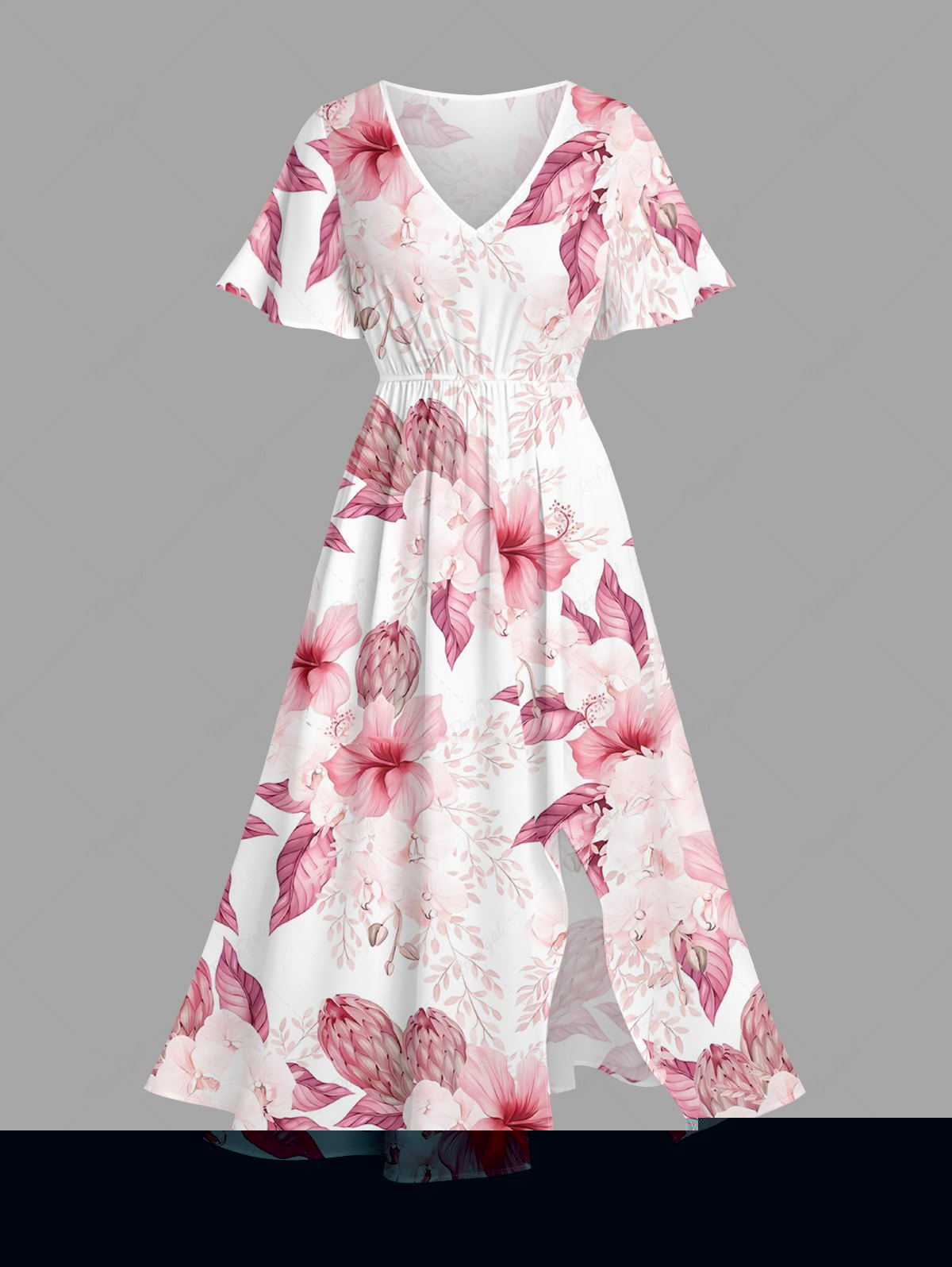Robe mi-longue hawaïenne fendue à imprimé tropical et fleurs d'hibiscus (grandes tailles) - 5x