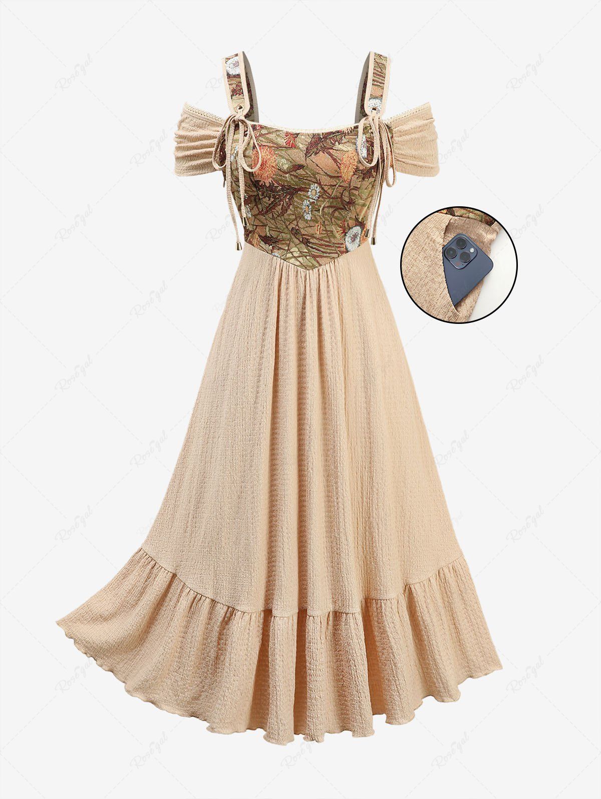 Robe grande taille à imprimé floral, bordure en dentelle, fronces, poches et épaules dénudées - 5x | Us 30-32