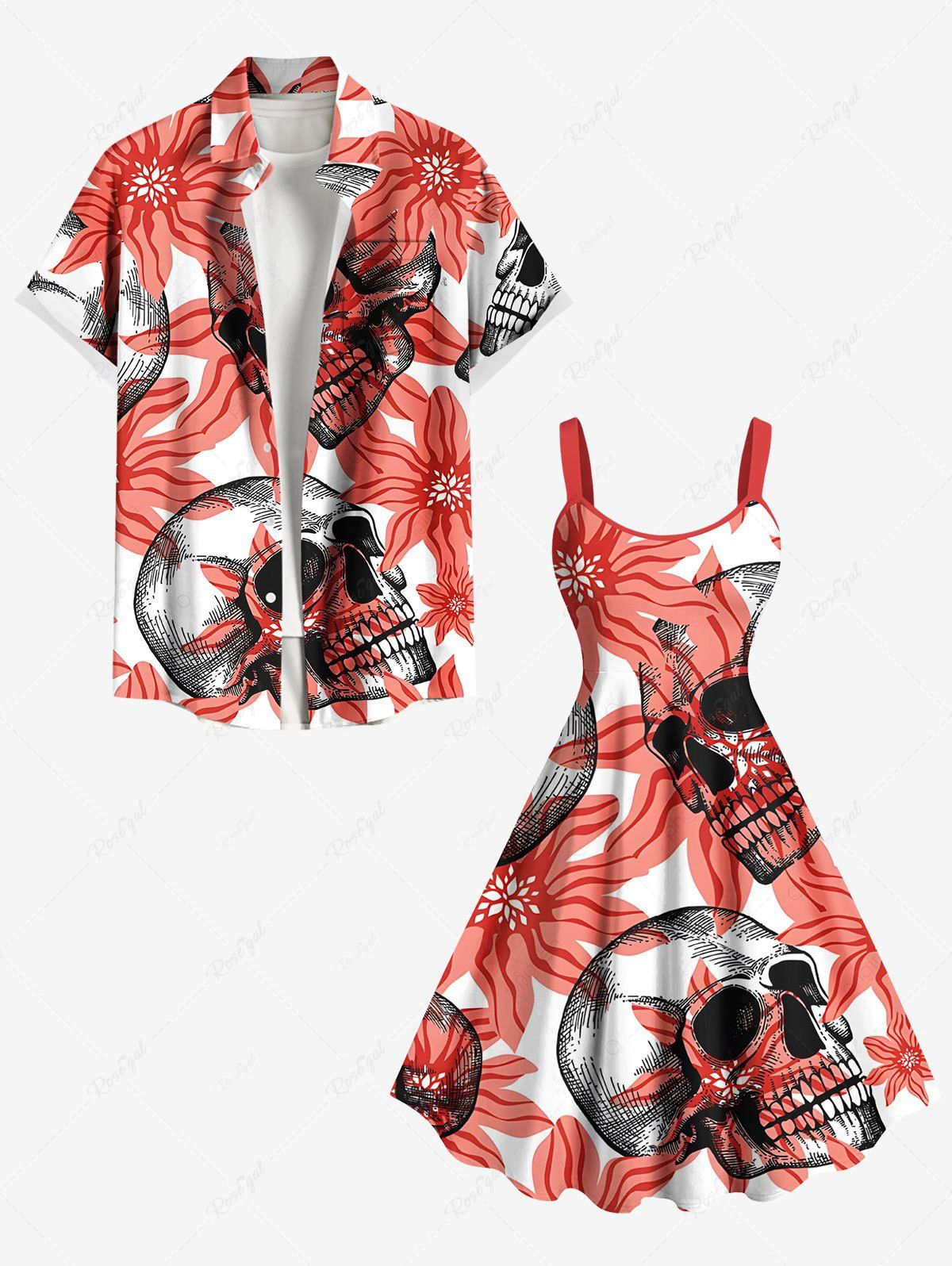 Halloween Skulls Flowers Print Plus Size Matching Outfit For Couples