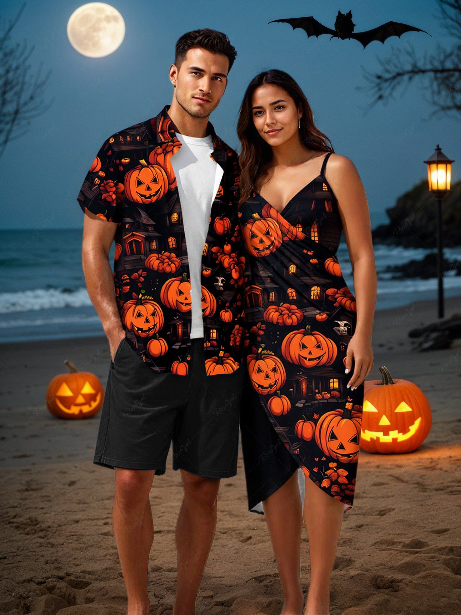 Tenue assortie grande taille pour couple, motif citrouille, lanterne et maison, pour Halloween