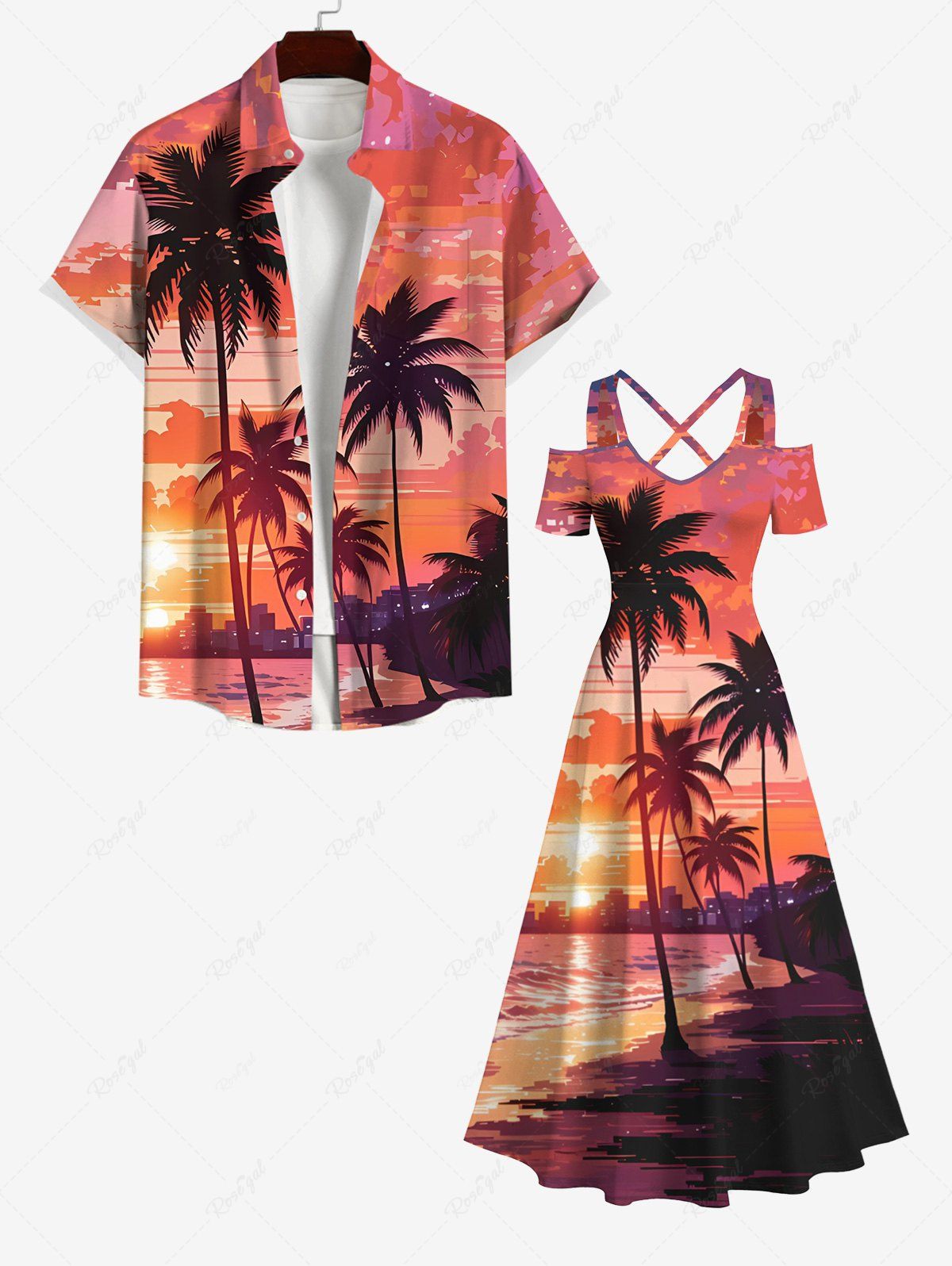Contrastant Imprimé Cocotier et Plage Grande Taille pour Couples