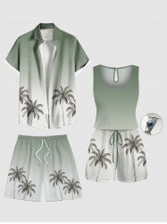 Ensemble chemise hawaïenne et barboteuse grande taille, tenue de plage assortie, imprimé cocotier ombré, pour couples