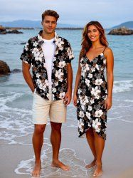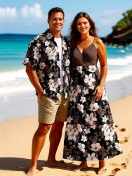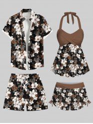 Maillot de bain court imprimé feuilles et fleurs ombré, grande taille, tenue de plage hawaïenne assortie pour couples