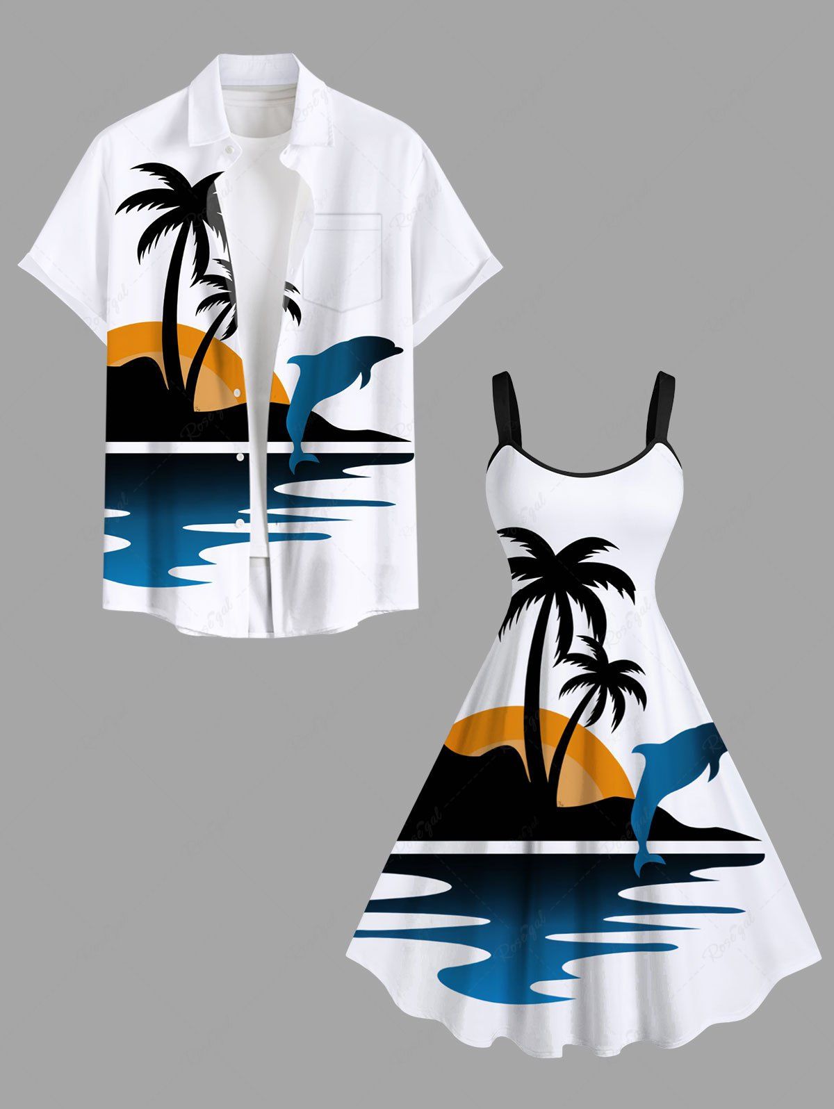 Short de Plage Grande Taille Imprimé Dauphin et Cocotier Derrière la Mer