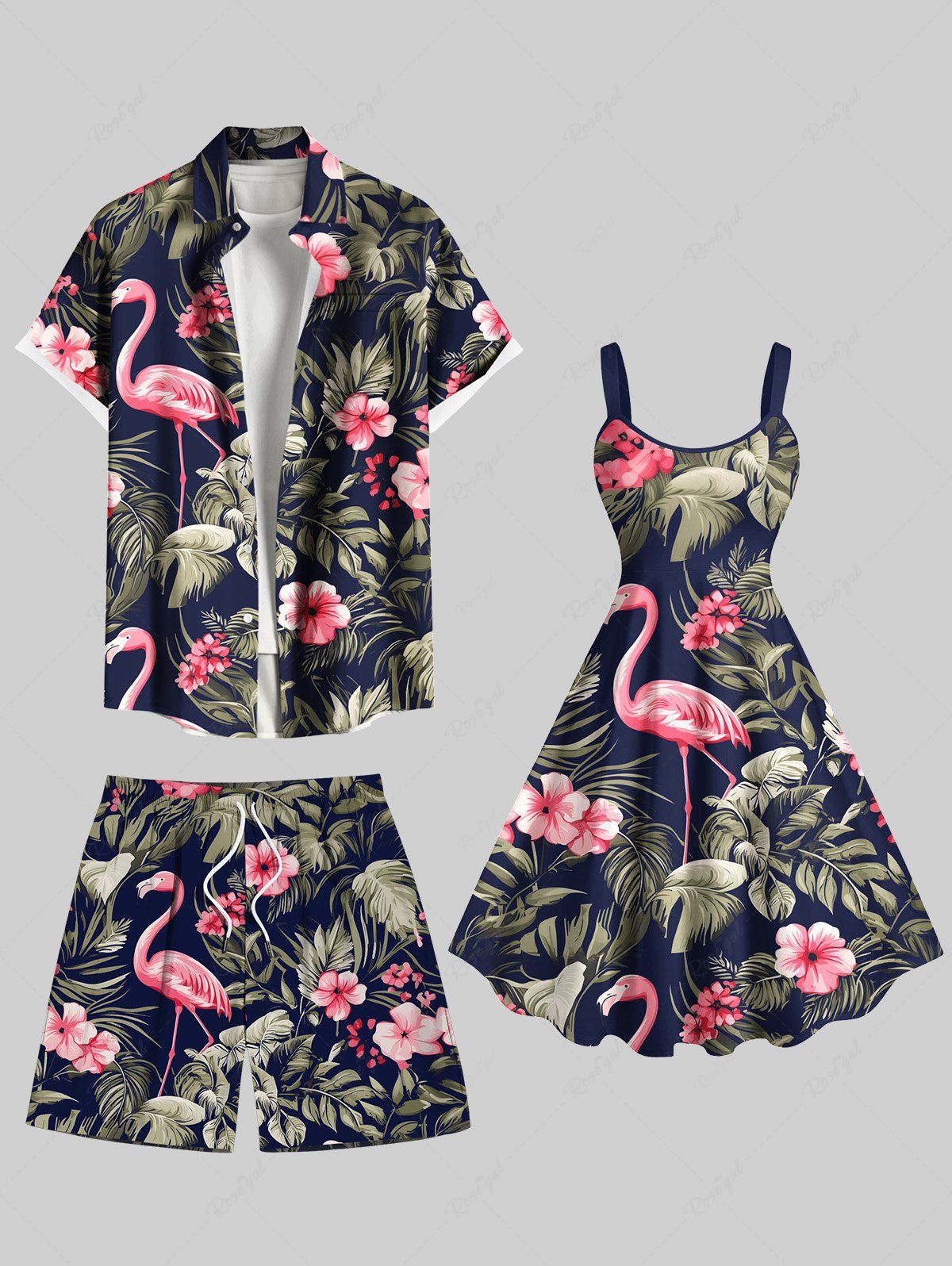 Tenue de plage hawaïenne assortie grande taille, motif feuilles tropicales, hibiscus, fleur, flamant rose, pour couples